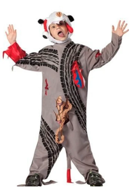 Oui oui. Ce costume existe et on peut encore l’acheter en ligne. Saviez-vous que le tueur en série Jeffrey Dahmer kiffai les animaux morts sur le bord de la route ? Il les ramenait chez lui pour en explorer l’intérieur et ça alimentait l’excuse qu’il voulait devenir taxidermiste. Pensez-y deux secondes : est-ce que quelqu’un (à part Jeffrey Dahmer) a déjà voulu volontairement zieuter un animal écrabouillé ?