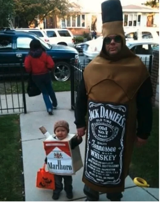 Passer Halloween avec son enfant, ça implique que ce soit cool pour l’enfant en question. Utiliser son costume pour faire une blague entre adultes que personne en dehors de vos potes ne va comprendre, c’est ordinaire. Surtout si les p’tits amis de Mathis sont tous déguisés en Pat’Patrouille ou en BeyBlades. Les costumes combinés, c’est un gros oui pour les fêtes au bureau et un gigantesque non pour la cueillette de bonbons. Arrêtez de penser juste à vous.