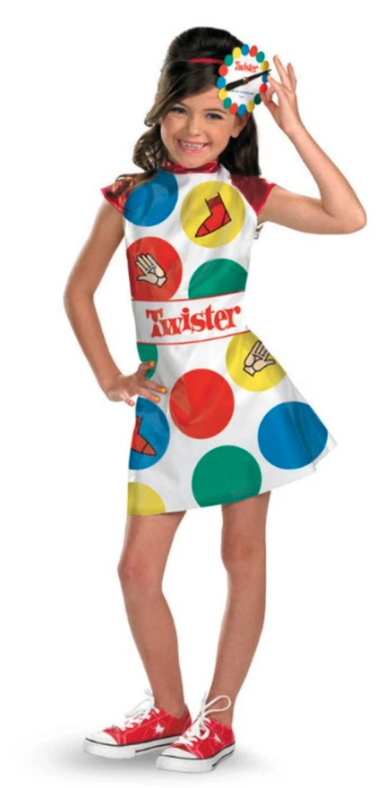 À la base, Twister est un jeu extrêmement sexuel. C’est un prétexte qu’ont utilisé les jeunes adultes de ma génération pour se tripoter en soirée. Ceci dit, ça fait un excellent costume pour les fêtes Halloween d’adultes si votre but est de coucher avec quelqu’un. Sur le dos de votre enfant, c’est une invitation à tous les étrangers à mettre leurs mains (et leurs pieds s’ils sont vraiment bizarres) dessus sans que Mathis ne comprenne qu’ils ne sont pas supposés faire ça.
