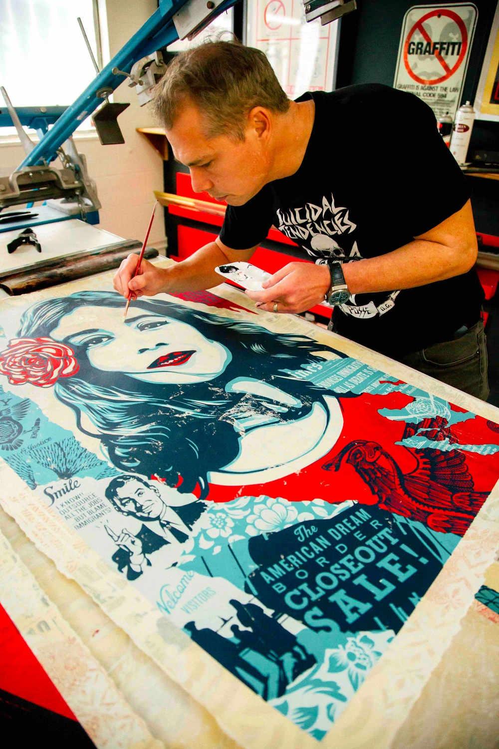 Je pensais passer le reste de ma vie à être un ouvrier. J’avais ouvert une imprimerie de sérigraphie lorsque j’étais à l’université, et je pensais que je passerais ma vie à imprimer des contrats pour d’autres gens, et faire du street art la nuit, comme hobby, sans en retirer d’argent. Bien entendu, j’avais l’espoir que je réussirais un jour à me sortir de mon atelier et vivre de ce qui me passionnait réellement. Mais l’argent, pour moi, a toujours été secondaire. Faire ce qui me plaisait, c’était le plus important.