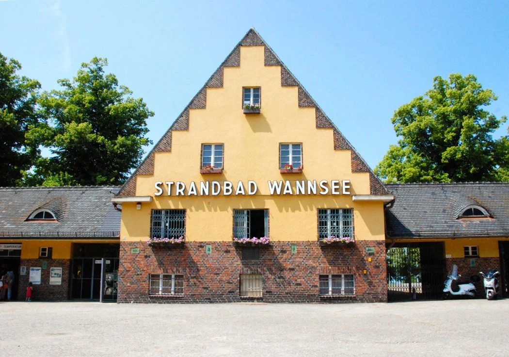 On peut y apercevoir la Haus der Wansee-Konferenz, un lieu symbolique dans l’histoire de la Deuxième Guerre mondiale puisque c’est à cet endroit, en 1942, que fut décidé le sort de la population juive en Allemagne nazie. Pourtant, la plage qui la borde était considérée comme un endroit de villégiature et de liberté pour les Allemand.e.s de l’époque.