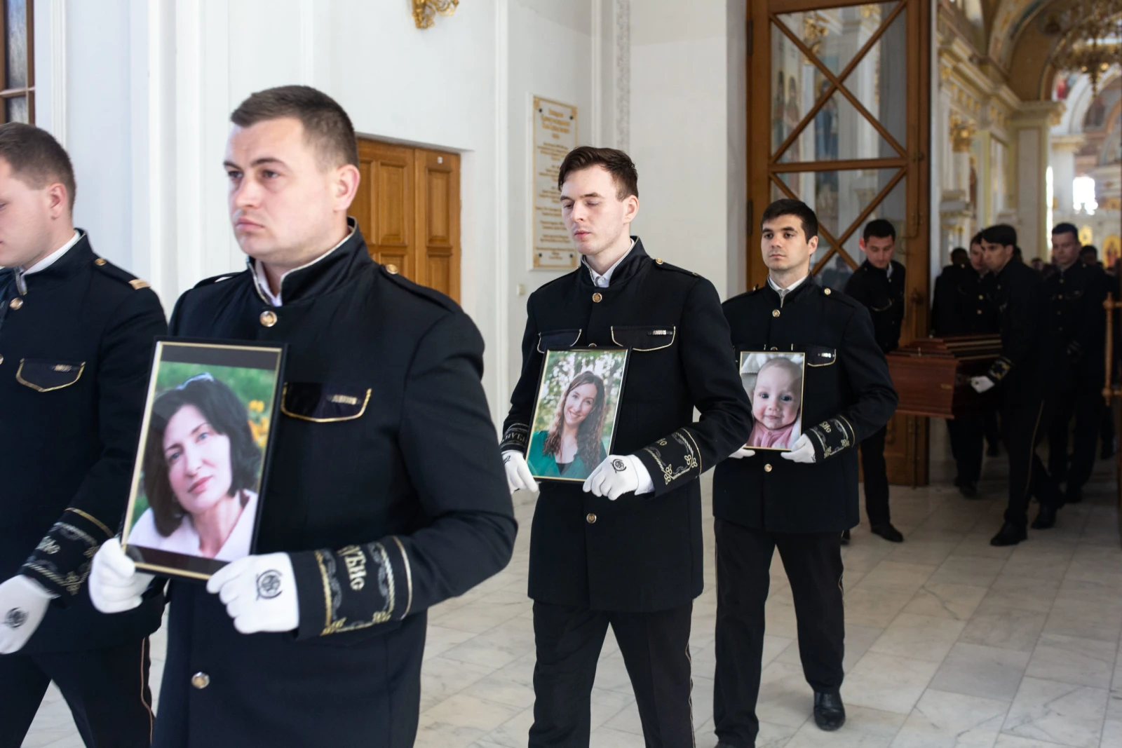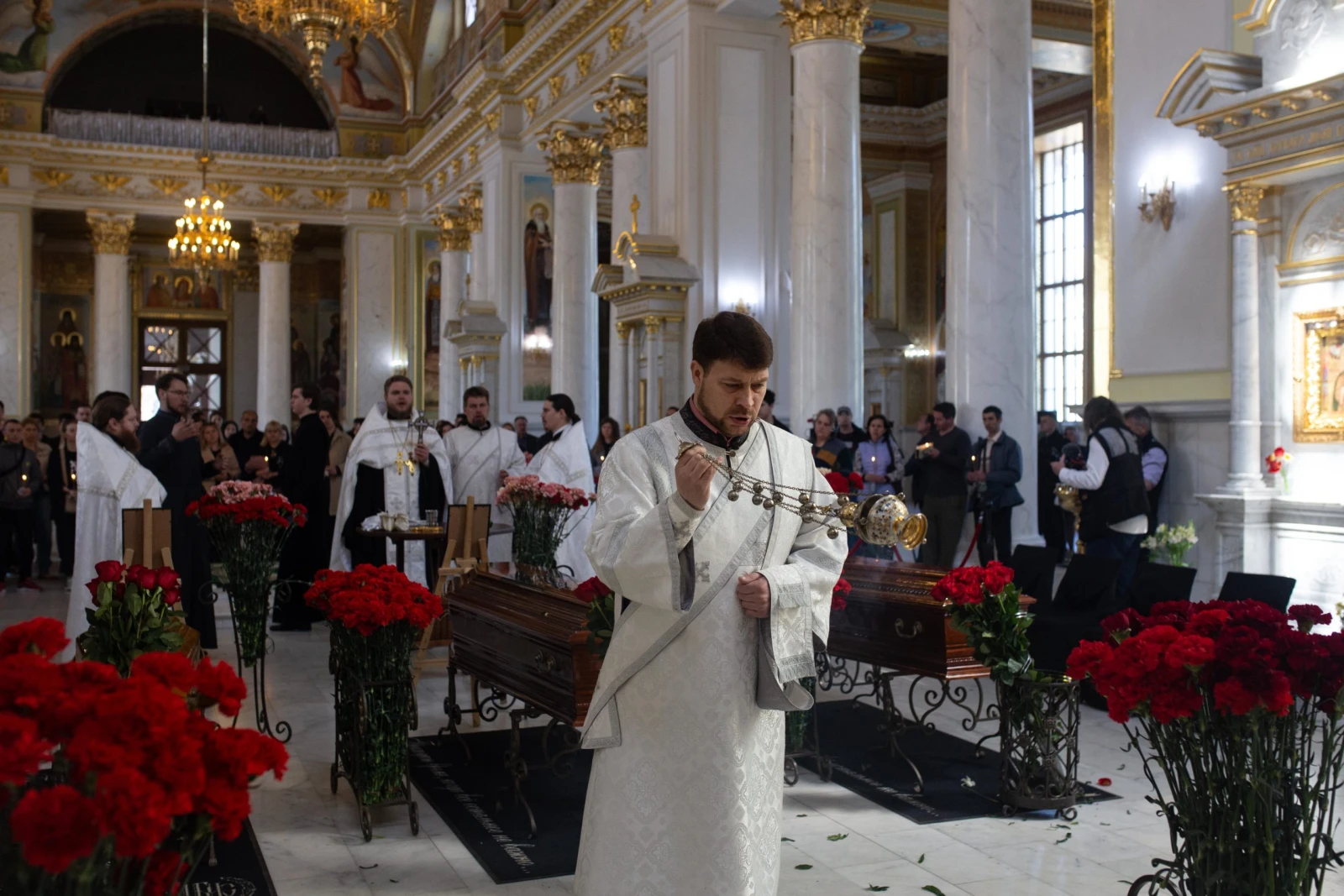 Dans la cathédrale de la Transfiguration, dans le centre historique d’Odessa, trois des huit victimes du bombardement du quartier Tairovo sont enterrées. Une centaine d’Odessites est venue leur rendre un dernier hommage.
