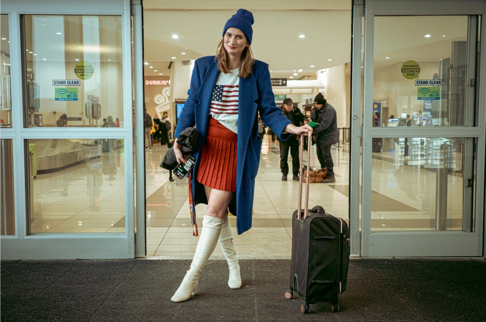 L’avion atterrit dans la grisaille du dimanche matin. À bord, on compte des lobbyistes, d’autres journalistes et Daphnée, encore fatiguée de sa soirée en festival, vêtue d’un pull à l’effigie du pays qui nous accueille. Elle confie ne pas voyager par soutien politique, mais par simple désir de vivre un moment historique.