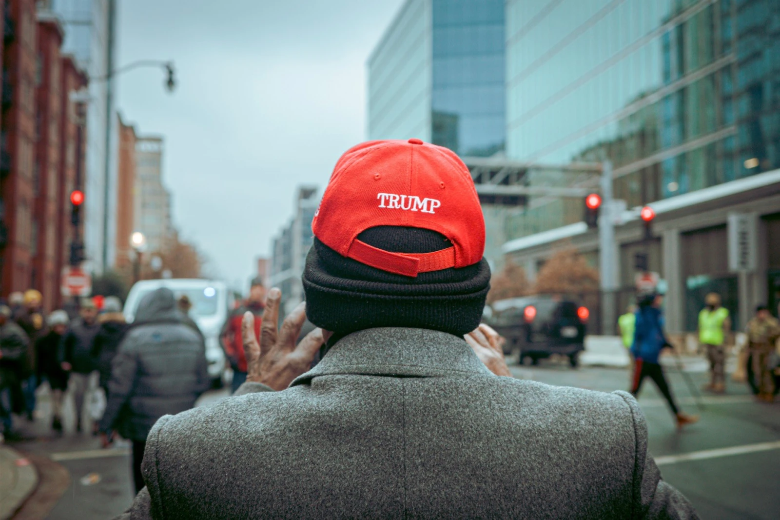 En ce dimanche du long week-end du Martin Luther King Day, un premier rassemblement est organisé dans le même amphithéâtre. Mon plan est d’y assister. Aux abords du Capitole, je me fonds dans la mer de casquettes rouges. Un coup d’œil à Google Maps me glace davantage que l’humidité ambiante : 1,6 kilomètre nous sépare encore de l’entrée. Putain. Aucune chance d’y parvenir, même avec le billet bidon réservé en ligne.