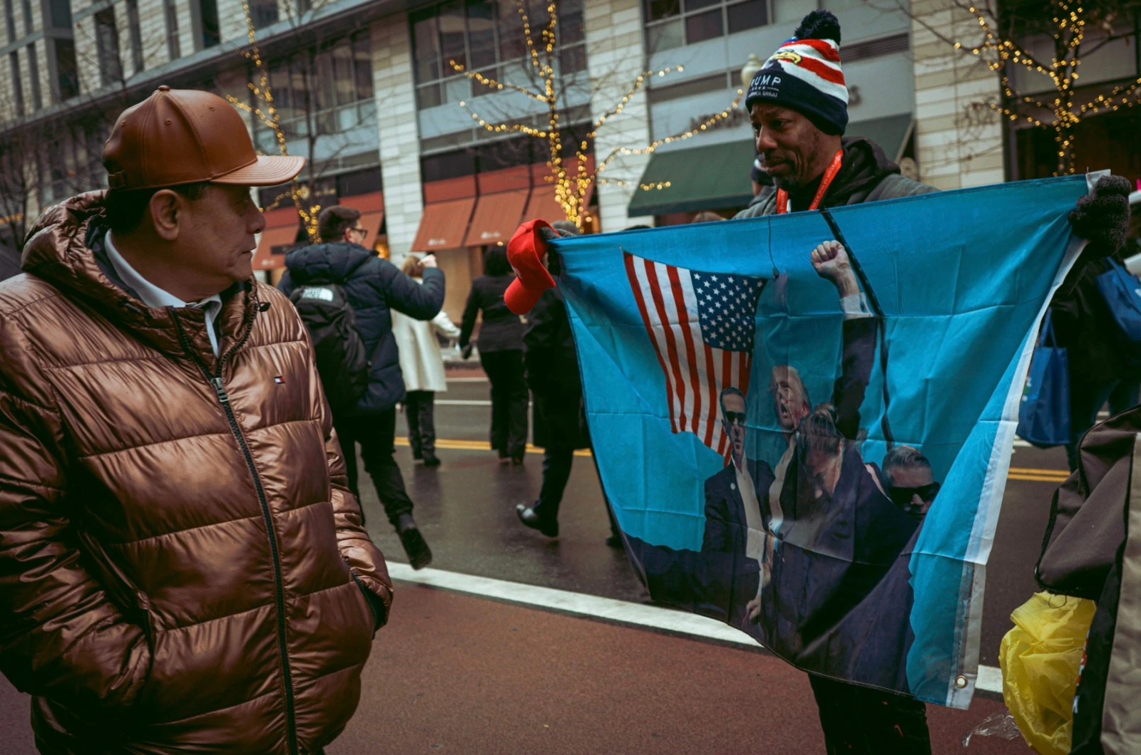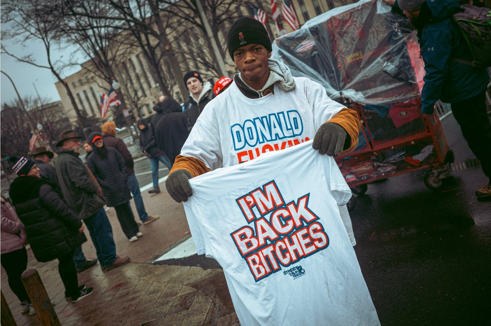 Les heures s’étirent, et la foule, fatiguée, regagne tranquillement ses hôtels. Les vendeurs, pressés de liquider leurs stocks, coupent les prix des derniers t-shirts à l’effigie de cette 60ᵉ inauguration. Non loin, des évangélistes en transe hurlent à pleins poumons que Trump est l’incarnation de Satan et que le pays est au bord de l’apocalypse.