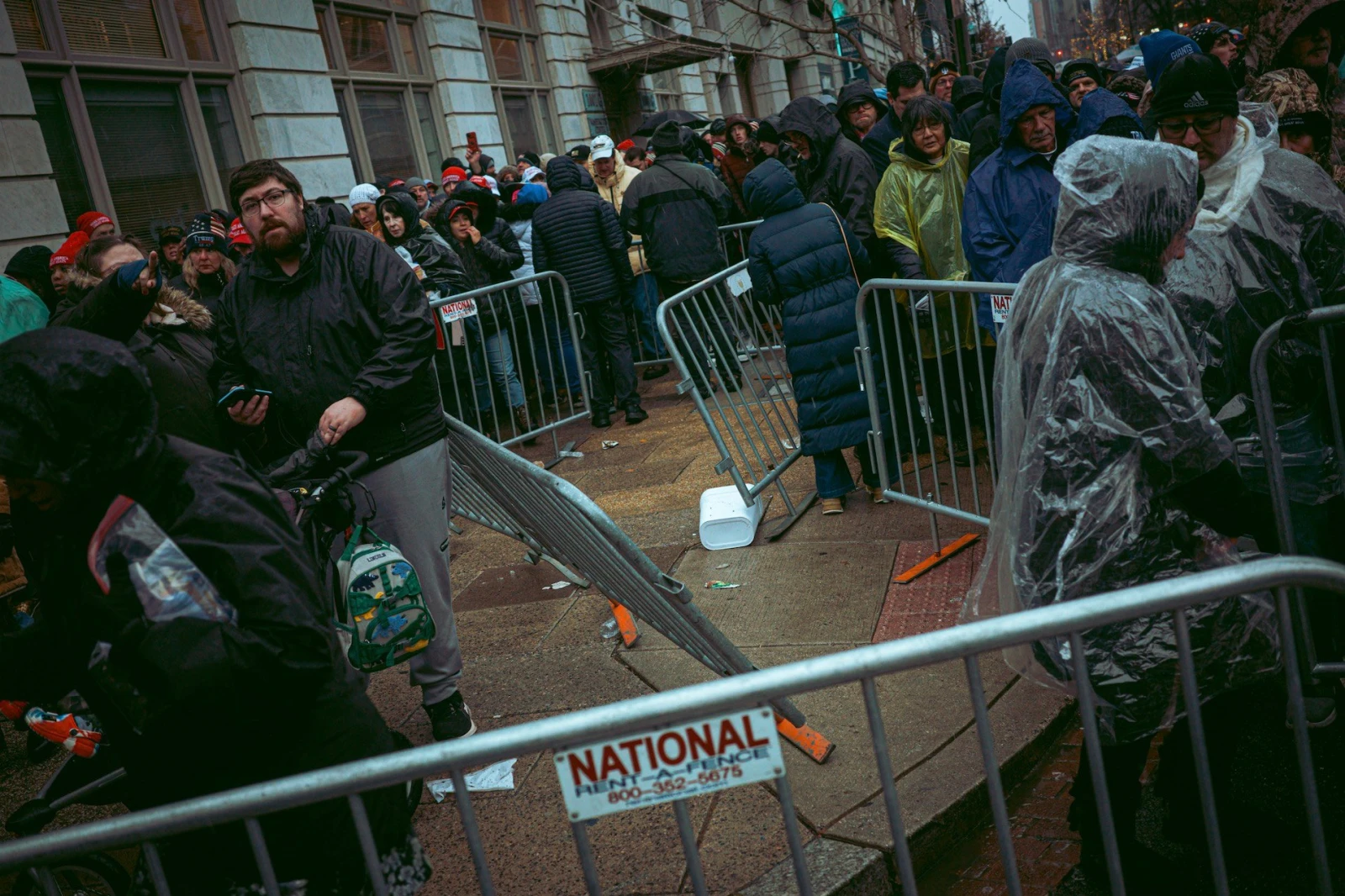 Livrée à elle-même, la foule avance sans directives sous un ciel menaçant de se déverser sur cette marée trumpiste. Je n’insiste pas. J’abandonne aussi vite que l’espoir d’entrer.