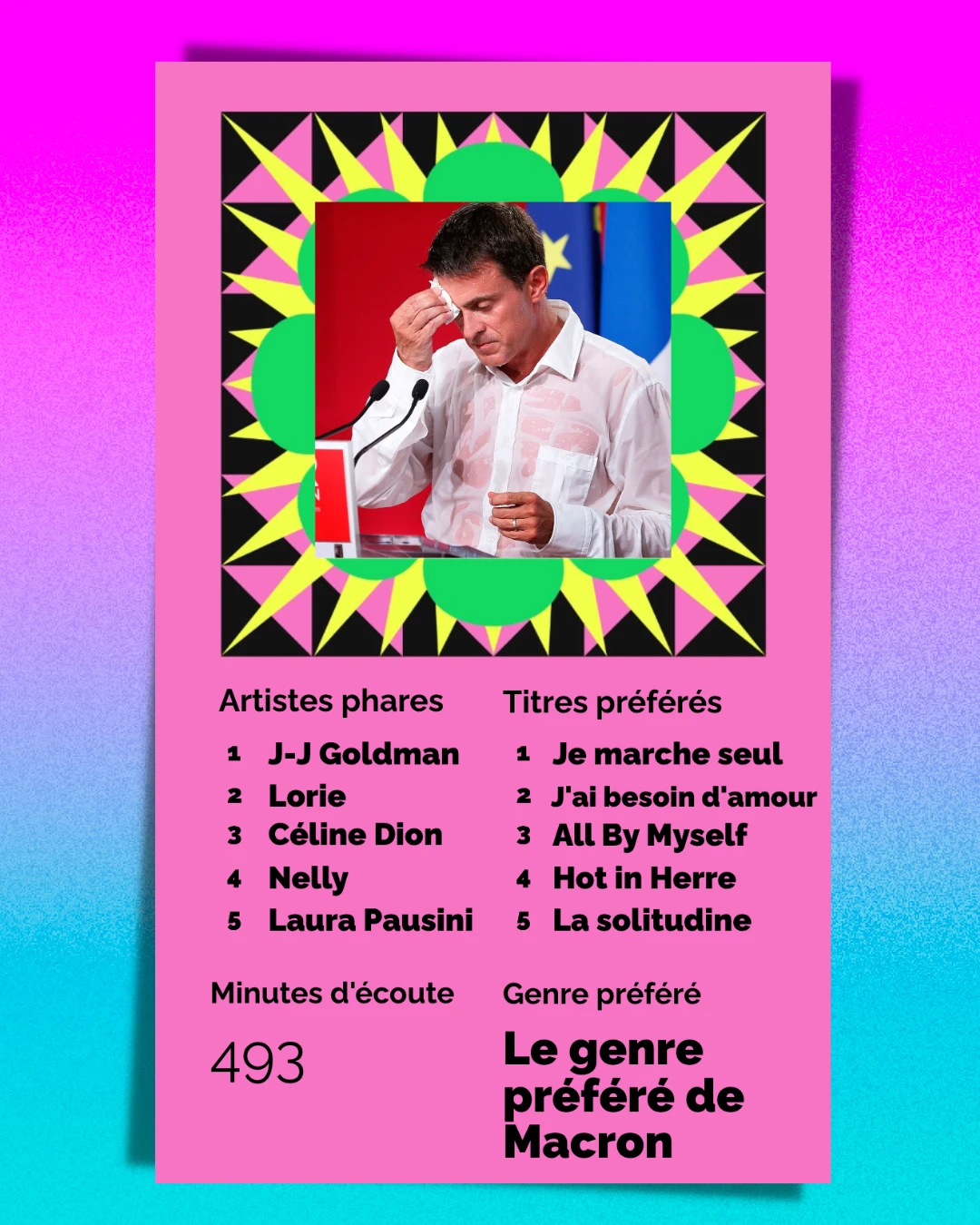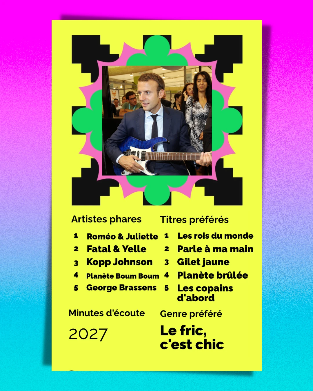Alors que nos stories sont envahies de bilans musicaux fièrement exhibés sous les yeux jaloux de ceux qui n’ont pas Spotify, on a réussi à choper en exclu les playlists de personnalités politiques.