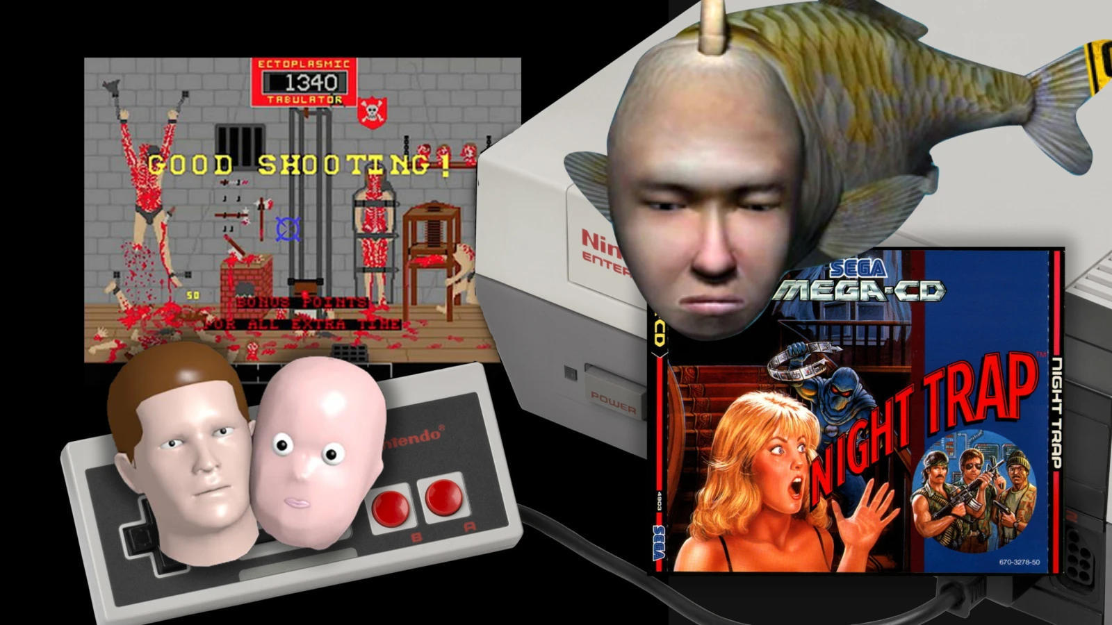 Le hic, c’est que la famille refuse de vous laisser fouiller la maison, donc vous devez enquêter… à l’aide d’un système de caméra relié à des “pièges” supposés capturer de potentiels intrus. Bref, c’est comme avoir un boulot de gardien de sécurité. Sauf que vous déboursez 49,95$ au lieu d’être payé. Le plaisir vient du côté voyeur bien assumé du jeu plutôt que quelconque interaction de la part du joueur. Night Trap, c’est un peu comme regarder un film de porno soft vraiment mal écrit.