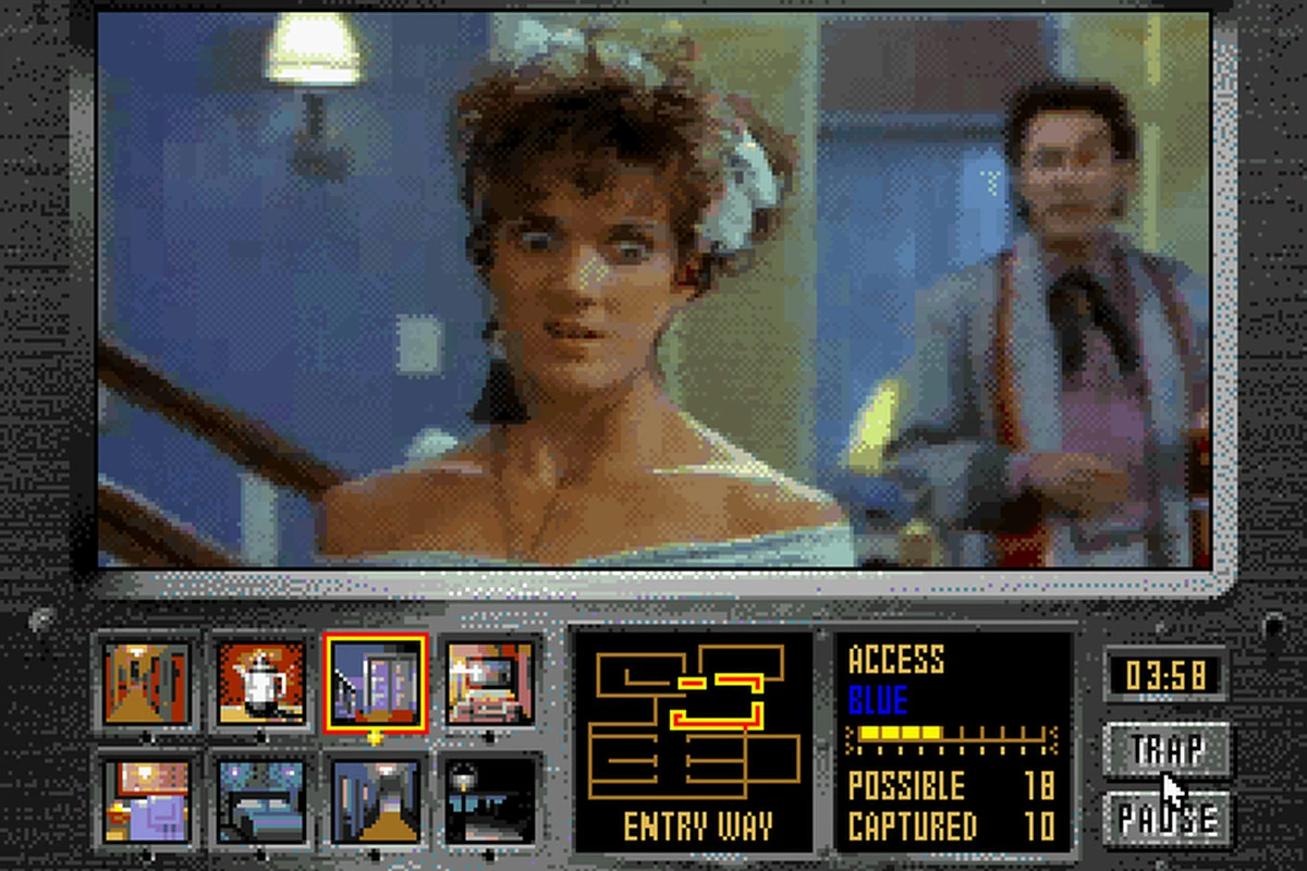 Le jeu Night Trap m’a rapidement ramené sur terre. C’est un exemple classique d’une compagnie de production voulant être la première à capitaliser sur une nouvelle technologie sans trop savoir comment s’en servir. Night Trap raconte l’histoire de jeunes filles ayant disparu dans des circonstances louches dans la maison d’une famille riche et d’une équipe tactique mandatée pour les retrouver. Ça sonne prometteur ? Attendez, j’ai pas fini…