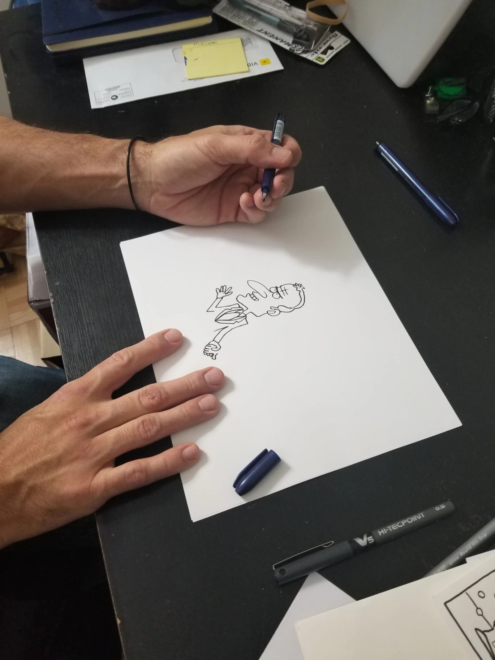 «Moi j’étais à une terrasse de café à Ménilmontant avec mon pote Seth, et j’ai reçu un texto qui me disait qu’il y avait eu des coups de feu à Charlie Hebdo. À l’époque, j’ai d’abord pensé à un drame conjugal», raconte celui qui a eu du mal à y croire. «Quand tu réalises qu’il y a des gens qui se sont fait flinguer à la kalach’ en plein Paris dans une rédaction… Surtout quand c’est des gens que tu connais, avec qui t’as fumé des joints et bu des coups…», lance le dessinateur, avec pudeur, qui ne pensait jamais faire face à ce genre de drame.