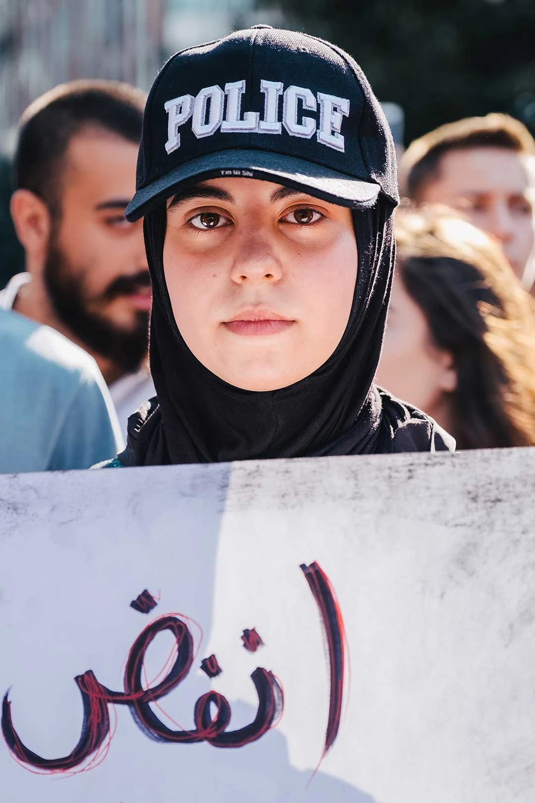 J’ai toujours été fasciné par cette région et je me suis donné comme mission d’en montrer une autre image. Depuis mon arrivée, je documente à travers la lentille de quoi est faite cette révolution. Devant moi, un enchaînement de scènes cocasses a lieu tous les jours, brisant le stéréotype du manifestant violent, même si, ne nous y trompons pas, le pays est en crise. Rapidement, j’ai réalisé le rôle crucial que jouent les femmes et j’ai tourné mon attention vers elles. La forte présence des Libanaises explique selon moi pourquoi cette révolution est relativement pacifique et à la fois inusitée. Criant à s’en crever les tympans tous les jours, formant des lignes entre les forces de l’ordre et les agitateurs question de garder la paix, organisant des vigies lorsque nécessaire, offrant des roses aux soldats, pratiquant des ateliers de méditation, et ainsi de suite. Elles sont calmes, patientes, courageuses et déterminées. Voici leurs visages.