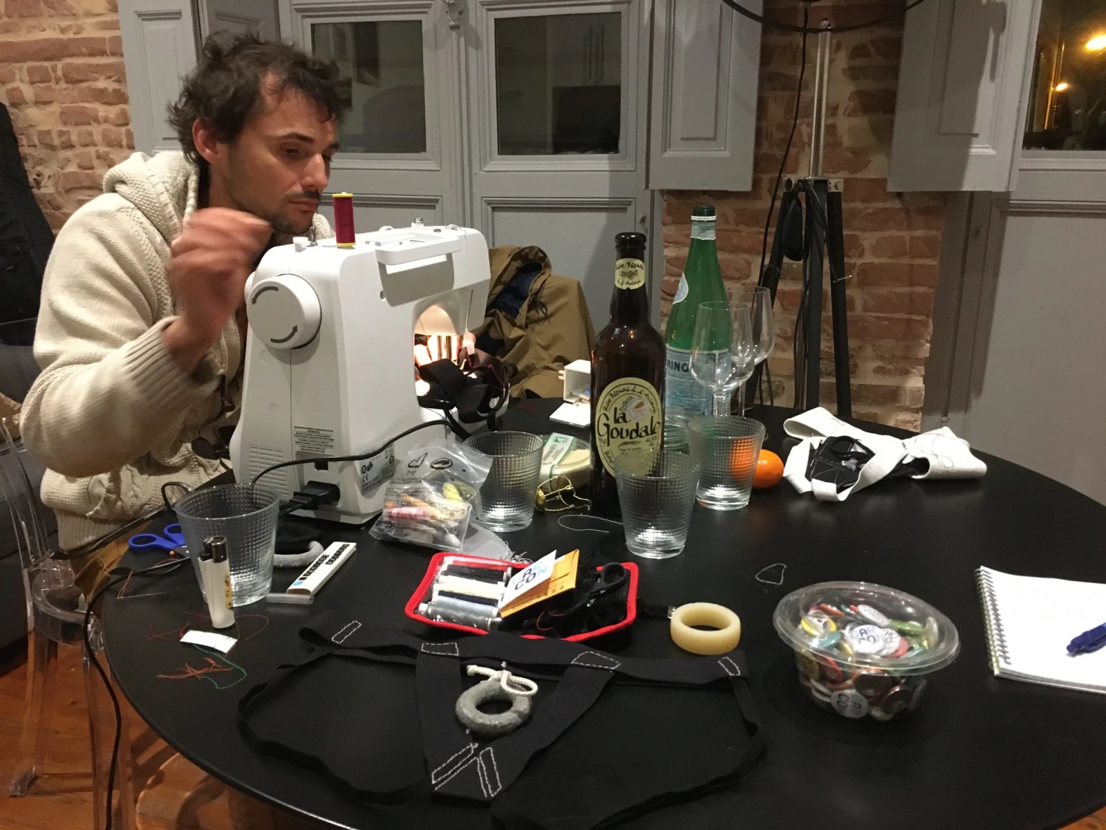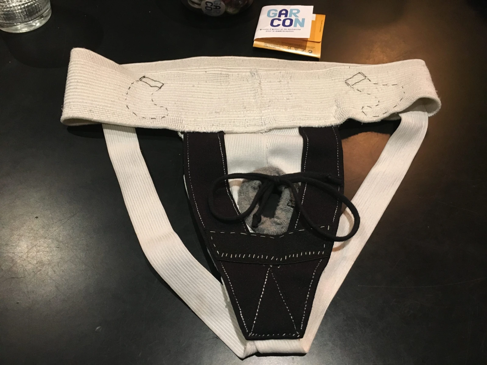 Dans le salon de Robin Lenogue à Toulouse, la table est chargée. Des bobines de fil, des aiguilles, des chutes de tissu, une machine à coudre, de la bière et des chips… on pourrait croire à l’arrière-boutique d’une étrange mercerie où l’on parle « testicules », « scrotum », « verge » et « sperme » sans aucune gêne. Une fois par semaine depuis le mois de septembre, l’association Garcon propose un atelier de couture en petit comité, gratuit et ouvert à tous, pour apprendre à fabriquer des « jock-straps », des sous-vêtements contraceptifs pour hommes.