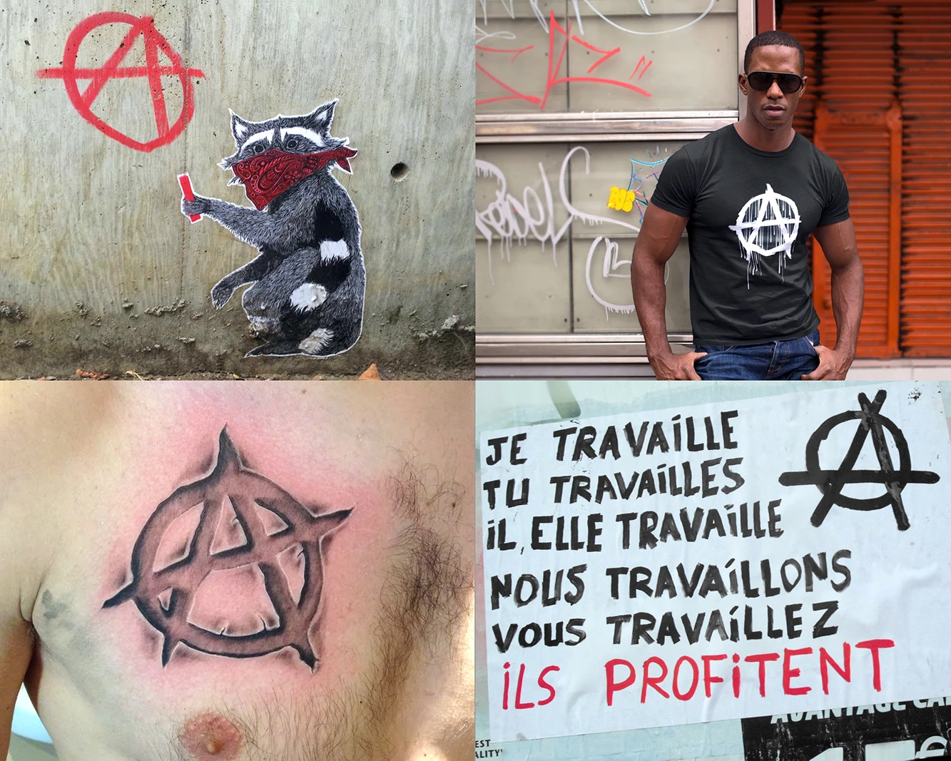 C’est le seul de nos quatre symboles qui contient une lettre de l’alphabet. Rien de cryptique, le mot ANARCHIE commence par un A dans la plupart des langues latines et anglo-saxonnes.