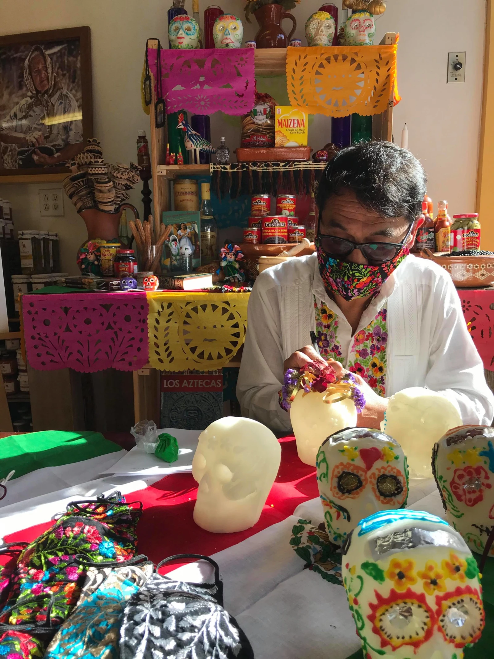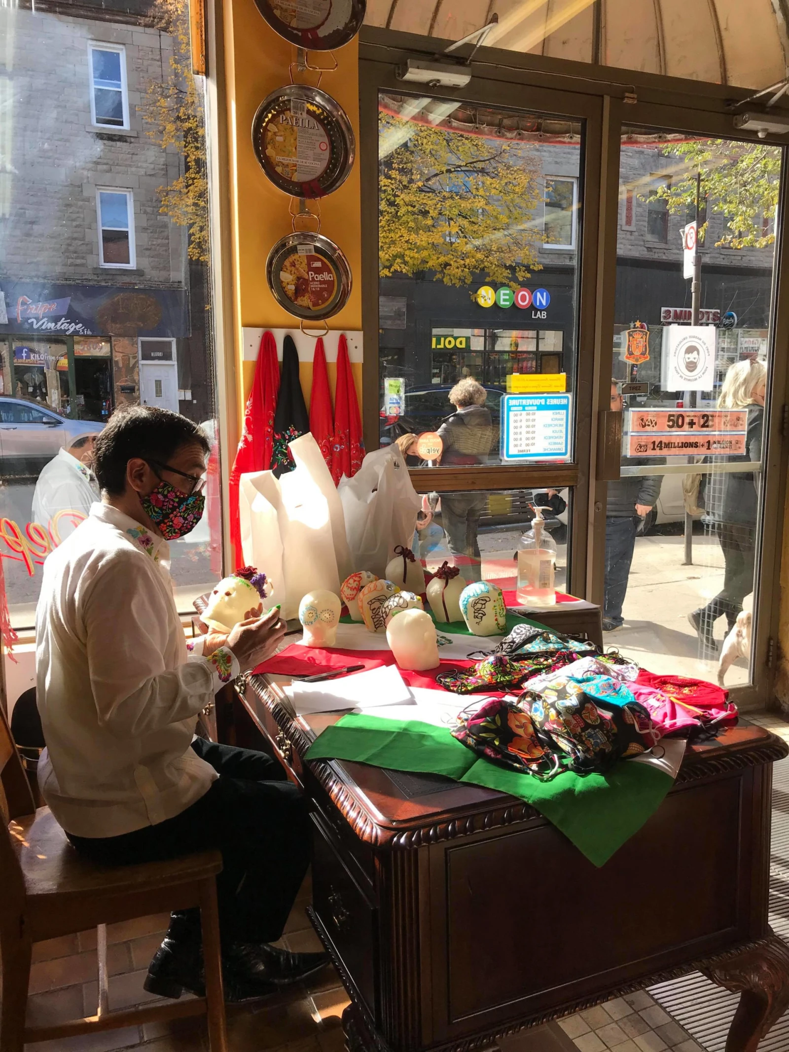 « Oui, j’aimerais beaucoup en avoir un pour honorer la vie de ma grand-mère. » que je lui réponds. Même si je ne connais Juan que depuis 15 minutes, je lui confie que j’ai perdu ma grand-mère en mars dernier et que ça me ferait plaisir de lui rendre hommage à travers cette belle tradition mexicaine. Mais est-ce que j’ai le droit? « Bien sûr, même si c’est une fête mexicaine, selon moi, ça appartient à tout le monde. Avant la COVID, j’organisais des fêtes pour souligner le Día de Muertos chez moi, avec des amis de diverses origines. La table se remplissait de plats de toutes les nationalités. J’aime que notre belle tradition circule et que chacun puisse la personnaliser. »