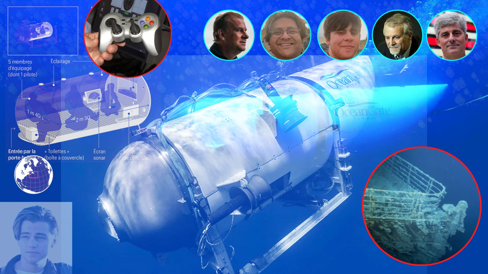 Mais plein d’autres choses font du Titan un submersible spécial. Premièrement, il n’est pas certifié par une organisation. Deuxièmement, il est construit d’une part avec des matériaux de pointe et il a été conçu avec l’aide de Boeing et de la NASA, mais aussi avec des choses que vous avez probablement chez vous, comme des lumières de Castorama. Et, fait qui étonne plusieurs personnes, il est piloté à l’aide d’une manette de Xbox de marque Logitech. Ça semble farfelu, mais même l’armée américaine en utilise sur des sous-marins de guerre, car ces manettes sont entre autres durables, peu chères et surtout intuitives pour les jeunes recrues.