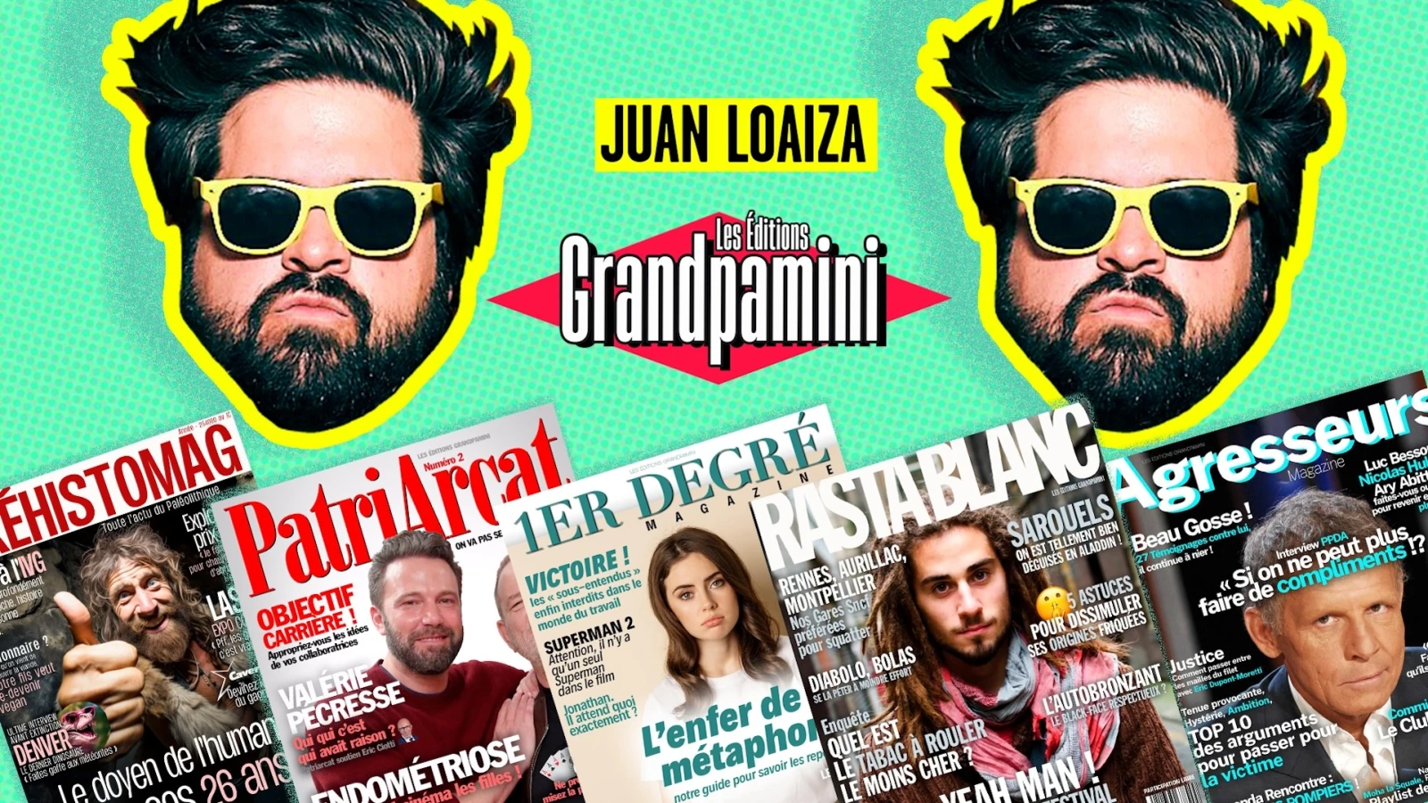Juan Loaiza, aka Grandpamini de son nom d’artiste, est parodieur de couvertures magazine : il reprend les meilleures tares et absurdités de cette presse pute-à-clic pour en extraire du pur jus de pus de l’espèce humaine. On lui doit les couvertures magazines de Rastablanc, Escrotérisme ou encore Patriarcat Un exutoire aussi poilant que grinçant. Grandpamini nous a accordé un entretien exclusif à quelques jours de l’ouverture de sa nouvelle expo.