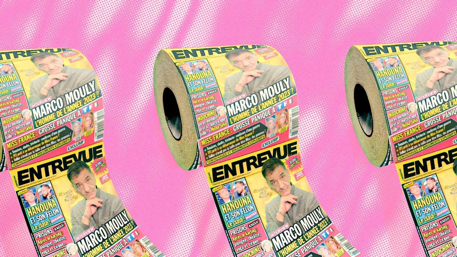On apprend que Geneviève de Fontenay n’était “pas au courant” de cette information, et la présidente du jury de Miss Lyon lors de l’élection de Sylvie Tellier lâche cette phrase vaguement complotiste : “Si Sylvie Tellier est en place, c’est qu’on la mise en place…”. Entrevue consacre ensuite SEPT PAGES (!!) à la défense de Cyril Hanouna face à Louis Boyard, qu’il appelle son “félon”, un mot peu usité dans le milieu journalistique et pour cause : connoté négativement, celui-ci signifie “empreint de déloyauté”. On est vite mal à l’aise devant une telle véhémence envers un type dont le seul crime a été de critiquer Bolloré à l’antenne. Changement de décor ensuite avec un mauvais sosie de Philippe Vandel qui vient nous vanter les services de chaînes gratuites qui permettent par exemple de regarder l’intégralité des Razmokets ou Les Filles d’à Côté diffusés non-stop :