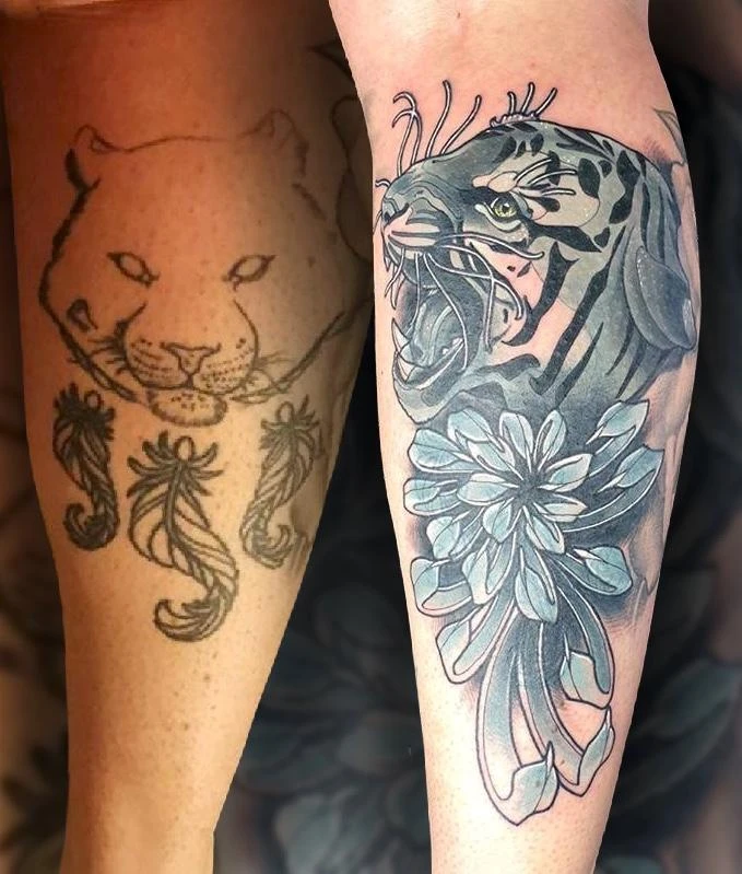 Un énorme motif pour faire table rase du passé après un premier tatouage totalement foiré. Bien sûr, c’est loin d’être parfait, et on voit encore ça-et-là des petits bouts de l’ancien dessin moche, qui dépassent sous les ombrages. Mais rien que quelques retouches ne sauraient progressivement corriger ! La preuve qu’il n’est jamais trop tard pour changer, apprendre de ses erreurs, et transformer une licorne à trois pattes (et sans grand relief) en combatif destrier.