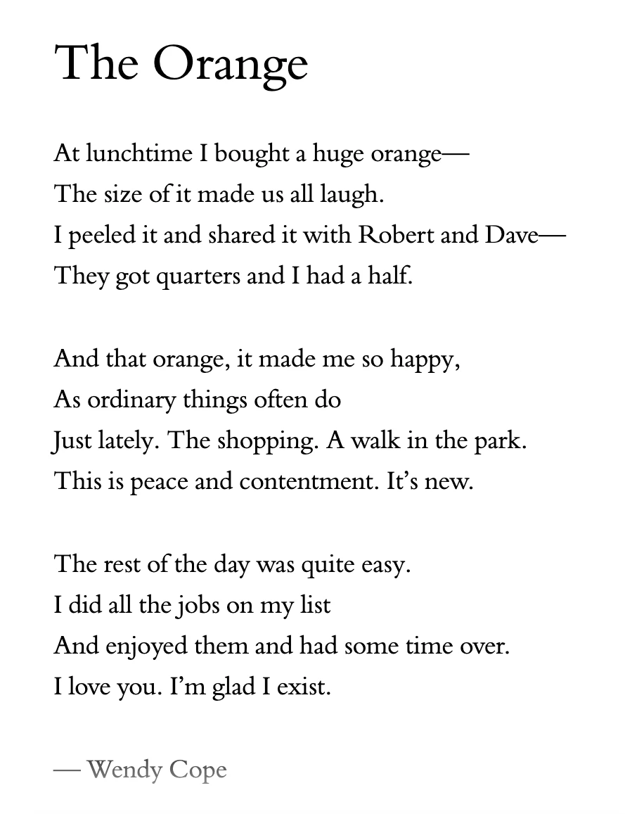 L’art n’est pas en reste ! En effet, l’acte d’éplucher une orange – ou de cuisiner un plat – pour la personne que l’on aime est souvent utilisé à titre de « je t’aime » métaphorique. Dans son poème The Orange, la poétesse britannique Wendy Cope commence par partager ledit fruit avec ses deux amis pour terminer par un tendre « I love you. I’m glad I exist. » (Je t’aime. Je suis heureuse d’exister).