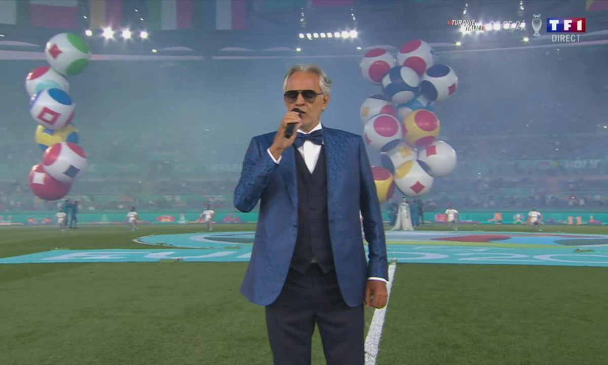 C’est bientôt la mi-temps et pour l’instant, l’homme du match est Andrea Bocelli et sa magnifique veste bleue.