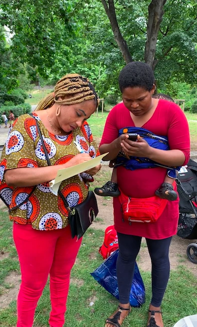 Je m’assois dans un coin pour écouter. Les femmes s’expriment dans un mélange d’anglais et de dialecte nigérian. Autour d’elles, leurs enfants en bas âge courent et s’agitent. Ils rient, crient, pendant que leurs mères font le point sur leur situation. « Je n’ai pas de travail, pas de nourriture pour mon bébé. J’essaie d’inscrire mon fils à l’école mais je n’y arrive pas », commence l’une d’entre elles. Une autre renchérit : « C’est vrai ça ! Pourquoi c’est si dur d’inscrire nos enfants à l’école ? » Carla prend des notes dans un carnet, cigarette en bouche. « Il faut aussi trouver une solution pour la langue », intervient une autre. « À la PMI (Protection Maternelle Infantile), les médecins nous parlent français alors qu’on ne comprend pas. On est obligé d’utiliser Google translate. J’ai peur de ne pas comprendre comment soigner mon bébé ». Les autres approuvent dans un brouhaha grandissant.