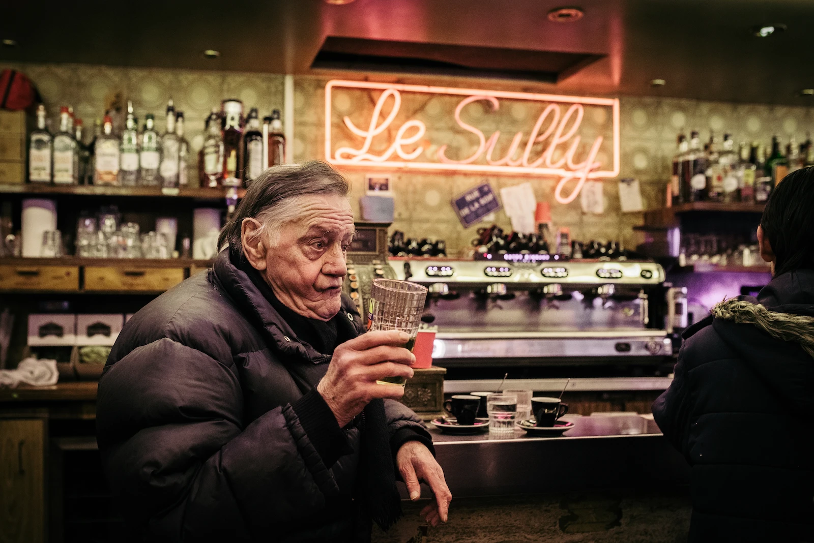 Je voulais célébrer les humains devant et derrière les comptoirs de bars. Les résistant.e.s, celles et ceux qui sont encore debout, qui ont encore le rideau levé. Et faire une sorte d’archivage de ces espaces de vie à travers la photo mais aussi les textes qui accompagnent chaque image.