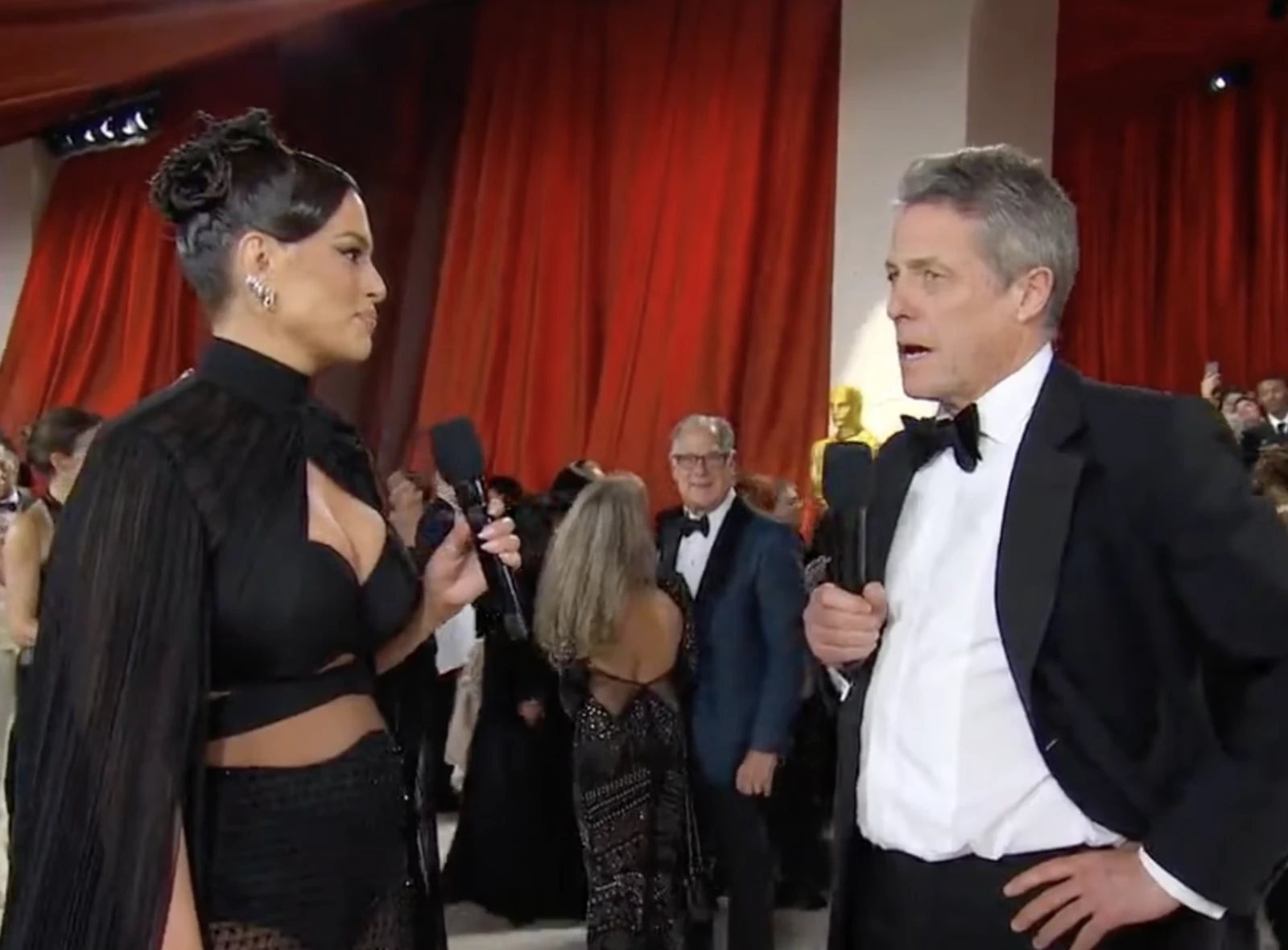 Chaque année, la cérémonie des Oscars a le droit à son lot de micro événements et d’incidents qui sont ensuite diffusés en boucle et ad nauseam dans tous les médias. L’an dernier, nous avons donc pu assister à la gifle de Will Smith qui était monté sur scène pour s’en prendre physiquement à Chris Rock après une série de blagues de mauvais goût sur l’alopécie de sa compagne. Et en 2023, faute de véritable drama à se mettre sous la dent, l’Internet mondial s’est enflammé autour d’une interview de Hugh Grant. L’acteur britannique, qui était là pour remettre le prix du meilleur décor, n’a pourtant pas fait de sortie polémique. Il s’est simplement contenté de répondre aux questions d’Ashley Graham, qui avait été missionnée par la chaîne ABC pour récolter les impressions des stars sur le tapis rouge, avant le lever de rideau. Mais les réponses du comédien de Coup de Foudre à Notting Hill étaient laconiques, sans esbrouffe. Voire quelque peu sarcastiques. Et elles ont suscité pas mal de réactions.