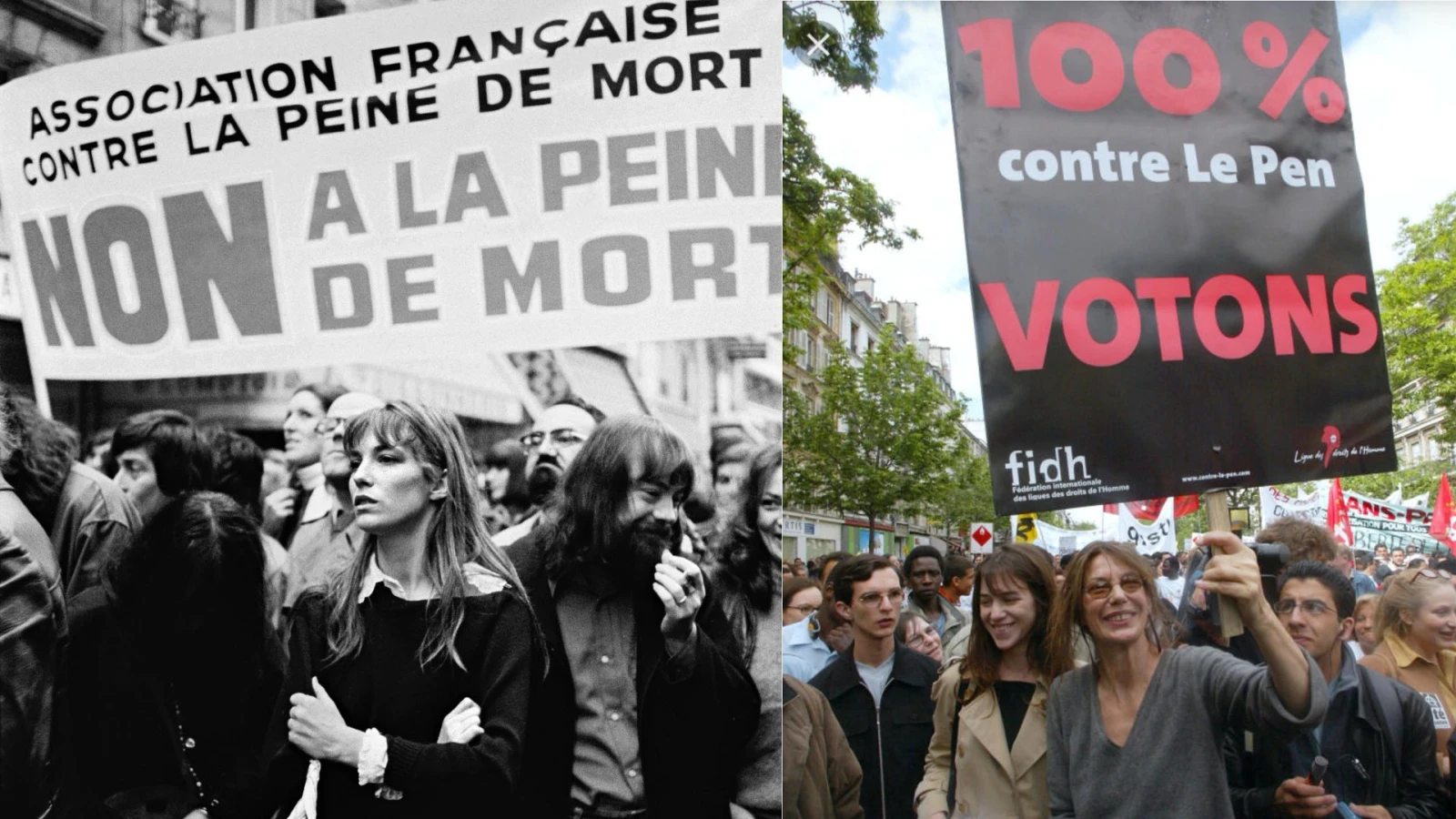 Fille d’un ancien résistant, Jane Birkin a marché dès son plus jeune âge contre la peine de mort. Lors de son arrivée en France dans les années 60, la jeune britannique continue en participant à des manifestations contre la peine capitale avec notamment Robert Badinter. « Quand j’ai rencontré Serge, il pensait que c’était très impopulaire de marcher contre la peine de mort. C’était pour mon bien, il considérait qu’à peine arrivée en France, j’allais mal me faire voir », racontait-elle en 2007 sur France Inter.