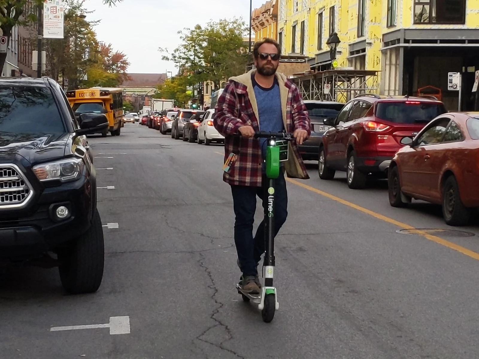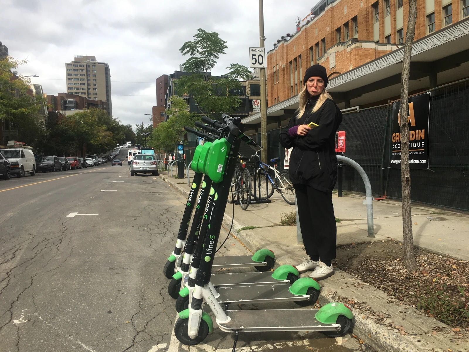 La routine s’installe. Depuis le début de cette expérience, j’évite le centre-ville comme la peste. Trop de trafic, pas de stationnement, détours et cônes orange. En résumé : l’enfer. Mais comme la plupart des trottinettes s’y trouvent, j’ai pris le taureau par les cornes, avec l’aide de ma jeune collègue Jasmine qui surveille ma voiture illégalement stationnée pendant que je couraille.