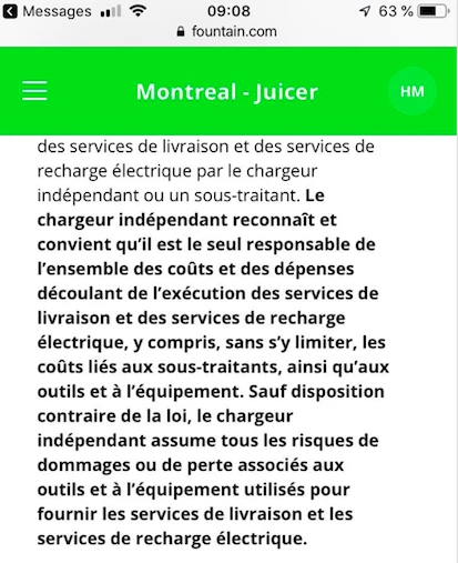 Un tel détachement n’empêche toutefois pas mon nouvel employeur d’exiger de ses troupes un comportement sans tâches. «Pendant toute la durée de sa mission, le chargeur indépendant accepte de consacrer, avec loyauté et diligence, tous ses efforts, toutes ses aptitudes à l’exécution des services de livraison et des services de recharge électrique d’une manière professionnelle», lit-on notamment dans le contrat qui nous est soumis après la formation.