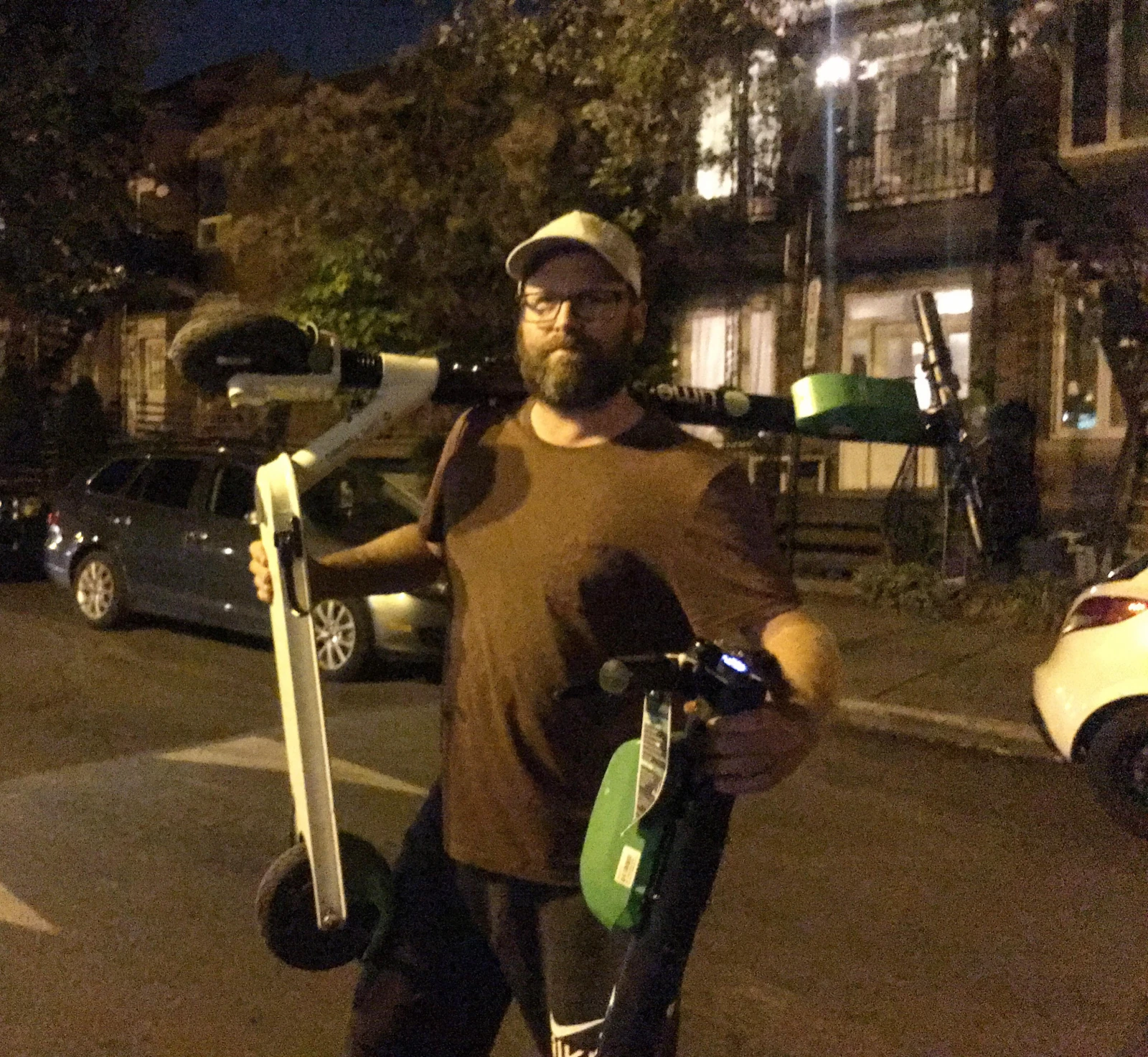 Quelques semaines plus tard, j’allais croiser Ross, un véritable Juicer, pendant sa collecte quotidienne. Posté à côté de deux trottinettes à recharger dans Ville-Marie vers 21h30, une période très achalandée où pratiquement toute la flotte est disponible, je savais qu’un collègue allait finir par venir à moi.