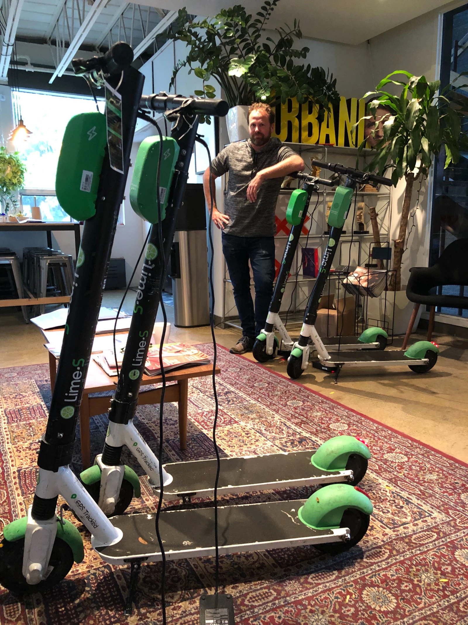 Soudain, un camion de location se gare en trombe. «Pas le temps! Le temps, c’est de l’argent», me lance Ross, en débarquant du véhicule, quand je lui demande de m’entretenir avec lui pour ce reportage. En vieux pro, il balance les engins dans le camion qui contient déjà une vingtaine de trottinettes, immobilisées dans des sortes de rack à vélo en bois, presque toutes branchées à l’intérieur même de la boîte.