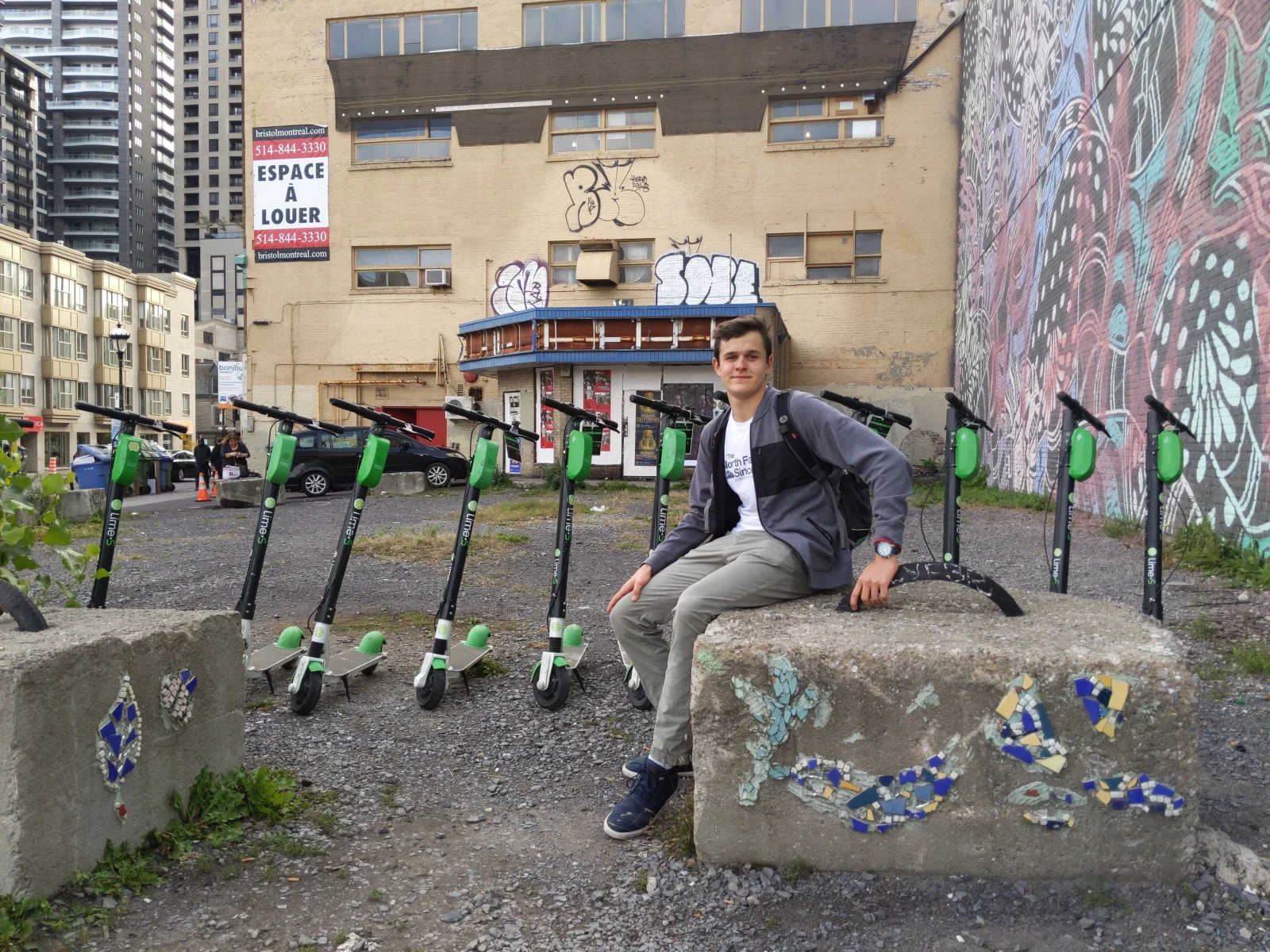 Le confrère se nomme Alex et charge des trottinettes comme side line en plus de son emploi dans la restauration. Il habite Ville-Marie, un quartier où l’objet de notre affection abonde. Chanceux.
