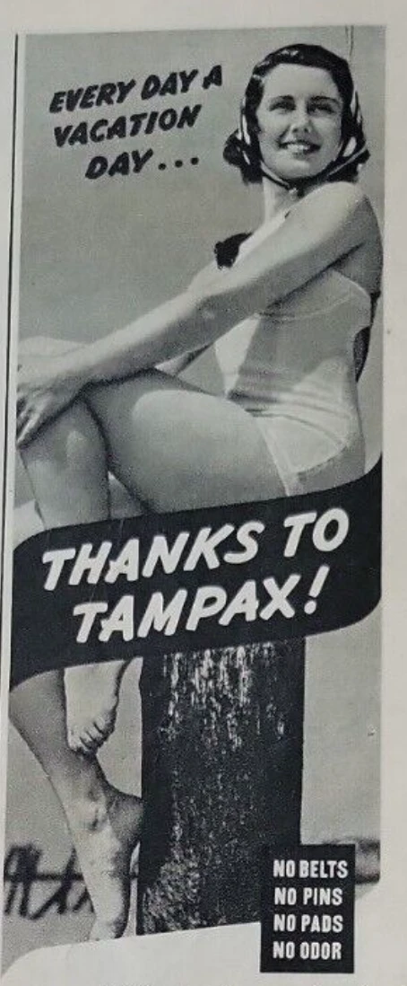 Si les femmes s’insèrent des textiles, végétaux, éponges ou papyrus imbibés d’huile d’olive ou de miel dans le vagin pour absorber leur flux depuis l’Antiquité, les premiers tampons n’arrivent sur le marché qu’à la fin des années 20. Ils se démocratisent au début des années 30, lorsqu’un ostéopathe nommé Earle Haas invente l’applicateur – brevet qu’il vend à la Tampax Sales Corporation – et matérialise de ce fait une certaine distance entre les femmes et leur vagin. En 1939, Modern Women lance un tampon déodorant pour “n’offenser personne” avant que d’autres marques ne lui emboîtent le pas. À travers le monde, quelques marques parviennent à concurrencer le géant Tampax, à l’instar d’o.b. en Allemagne qui commercialise des tampons sans applicateur ou de Anne dans les années 60 au Japon, dont le nom fait référence au journal d’Anne Frank dans lequel les règles sont abordées plusieurs fois.