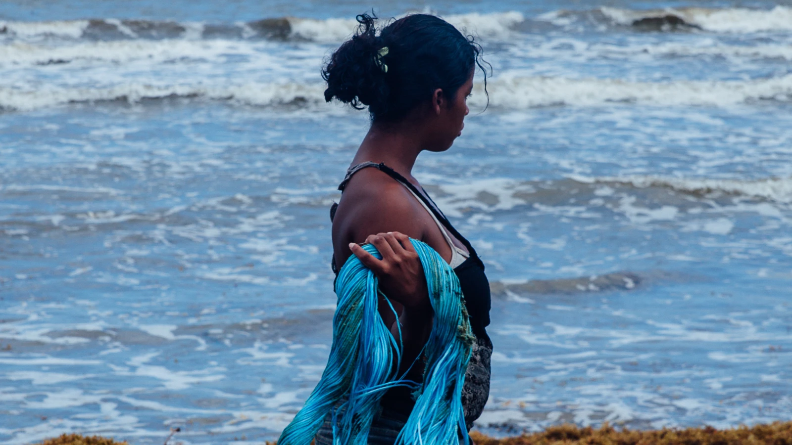 Aussi parce que ces longs fils bleus m’ont fait penser à la légende de Liwa mairin. Il s’agit d’un mythe Miskitos, d’un esprit élémentaire, une sirène, mi-déesse mi-démon qui veillerait sur les eaux Caraïbes, et qui punirait tous ceux qui abusent de ces trésors… Soit les pêcheurs Miskitos qui vivent de la pêche sous-marine de langoustes et de concombres de mer et qui exportent ensuite leur butin aux États-Unis et en Asie. À raison de plusieurs heures par jour, ils écument le large équipés de bouteilles de plongée rouillées et autres matériaux complètement désuets. Très peu informés sur les règles de sécurité qui encadrent la pratique, plusieurs centaines d’entre eux ont déjà été tués et des milliers d’autres paralysés. La coupable ? Liwa mairin.