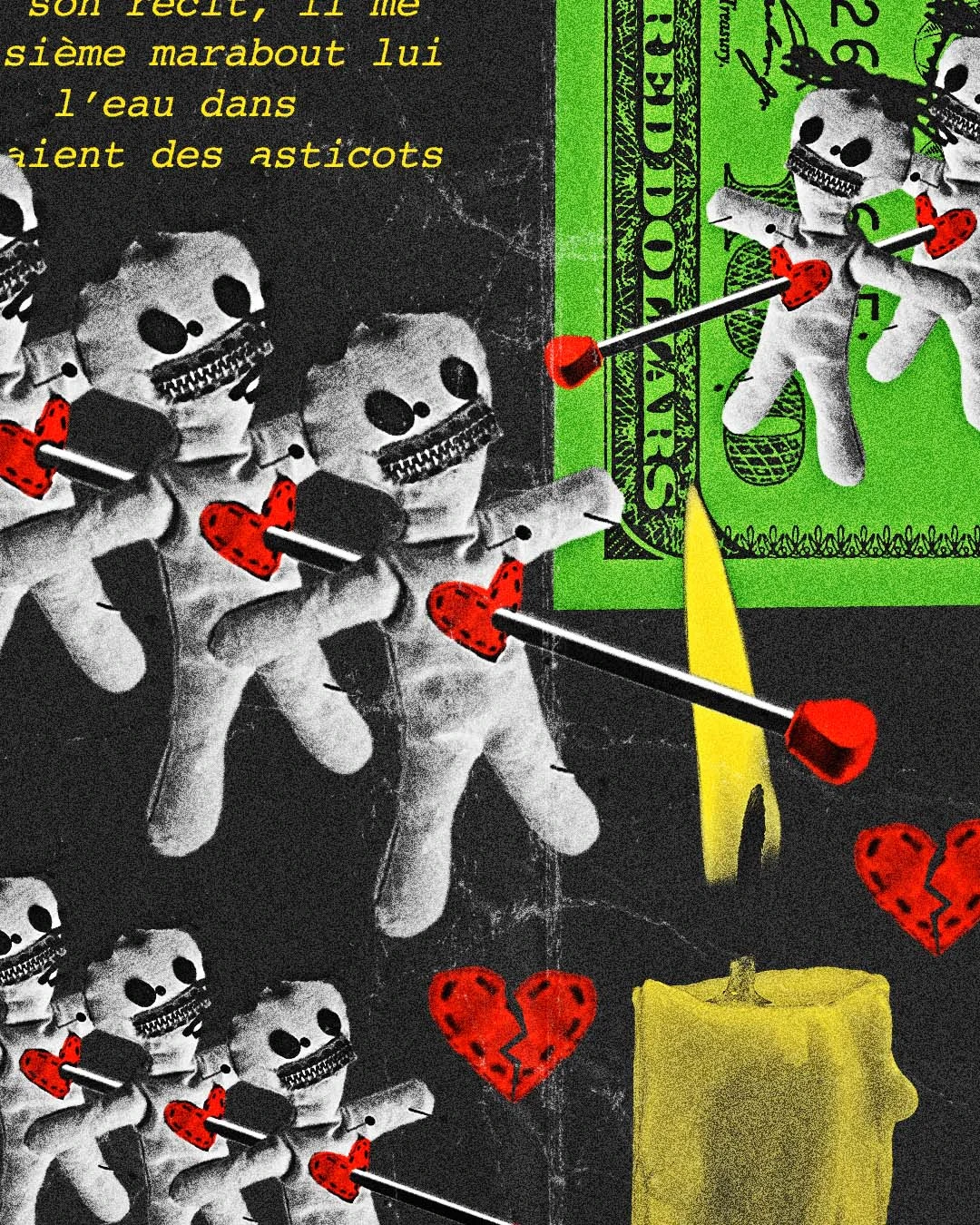 Un second marabout a accepté de l’aider en échange d’un coq noir et d’un mouton. Il a utilisé le sang du premier et mangé le cœur du second pour que la magie opère à l’endroit d’une victime d’Alvin. Le surlendemain, son client lui aurait viré 2000 euros.