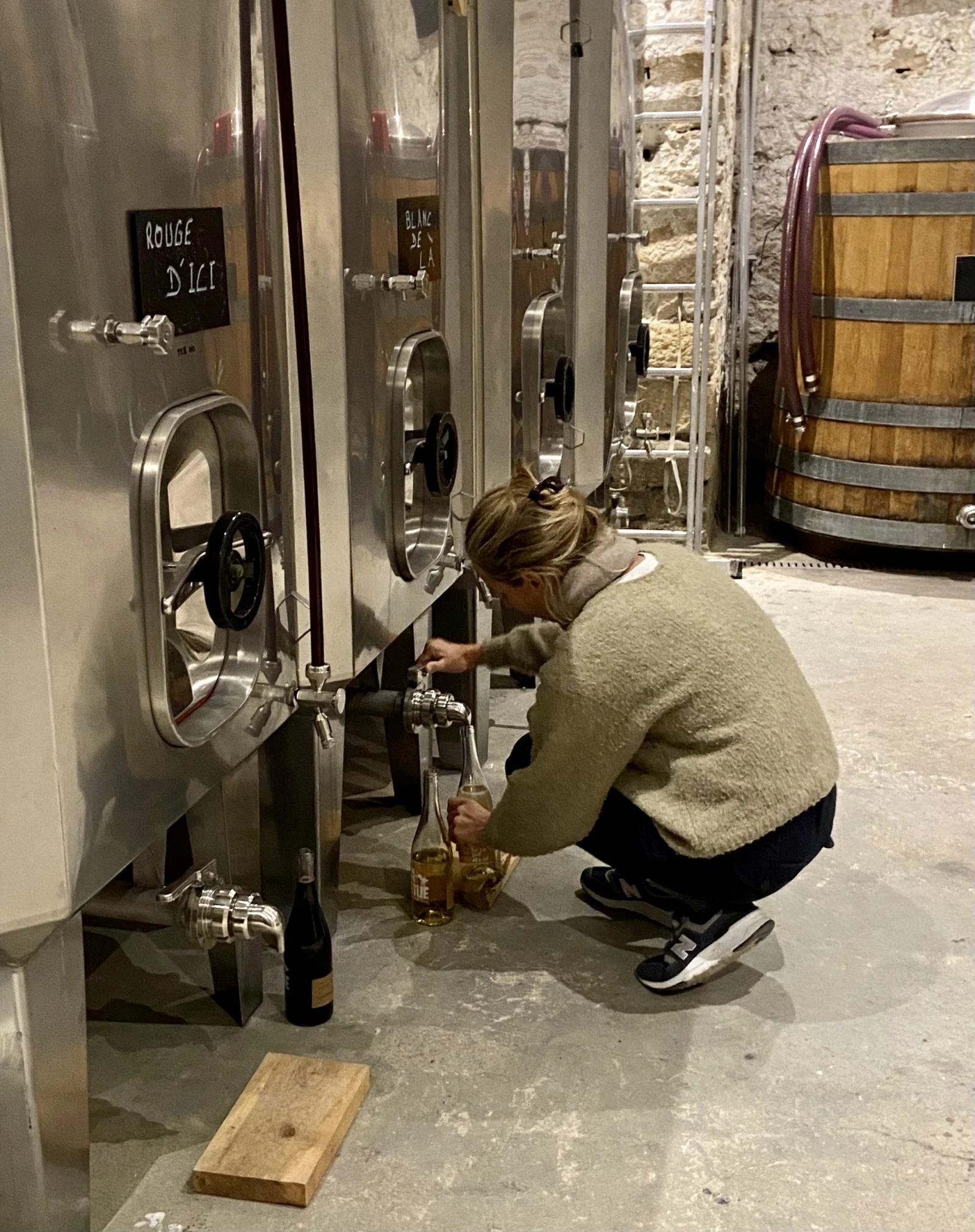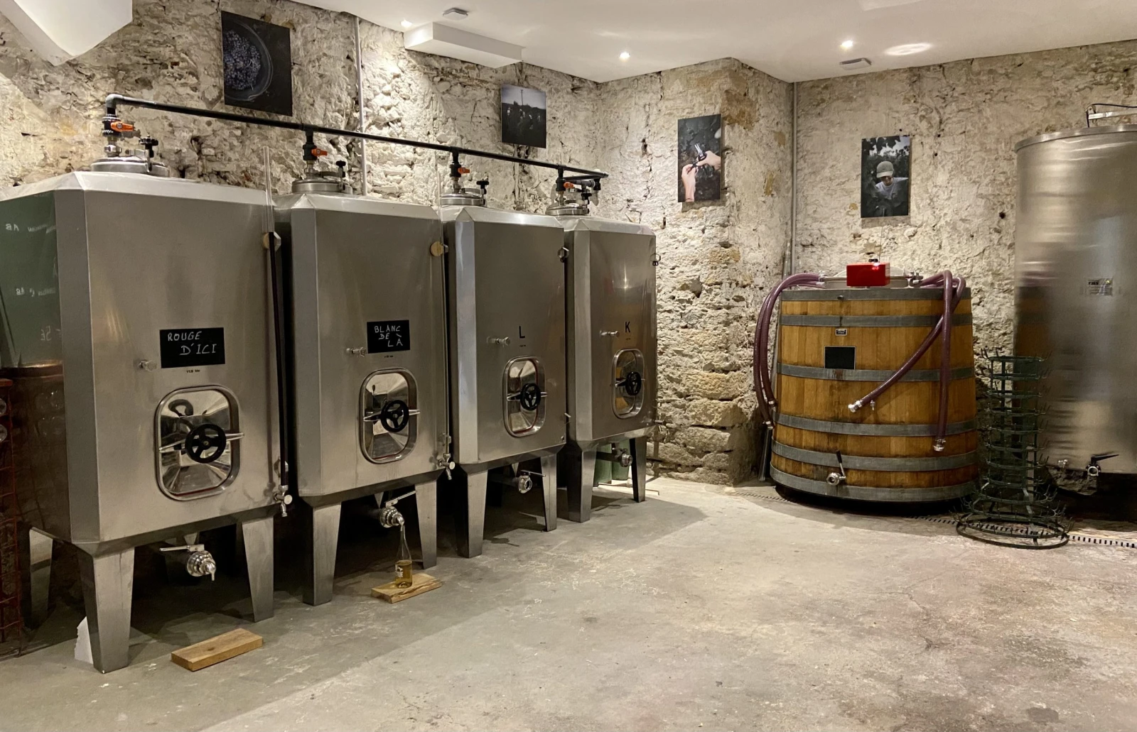 Dans ce tout petit local en pierres, je découvre un pressoir, quelques cuves et une Géraldine Dubois, tout sourire.