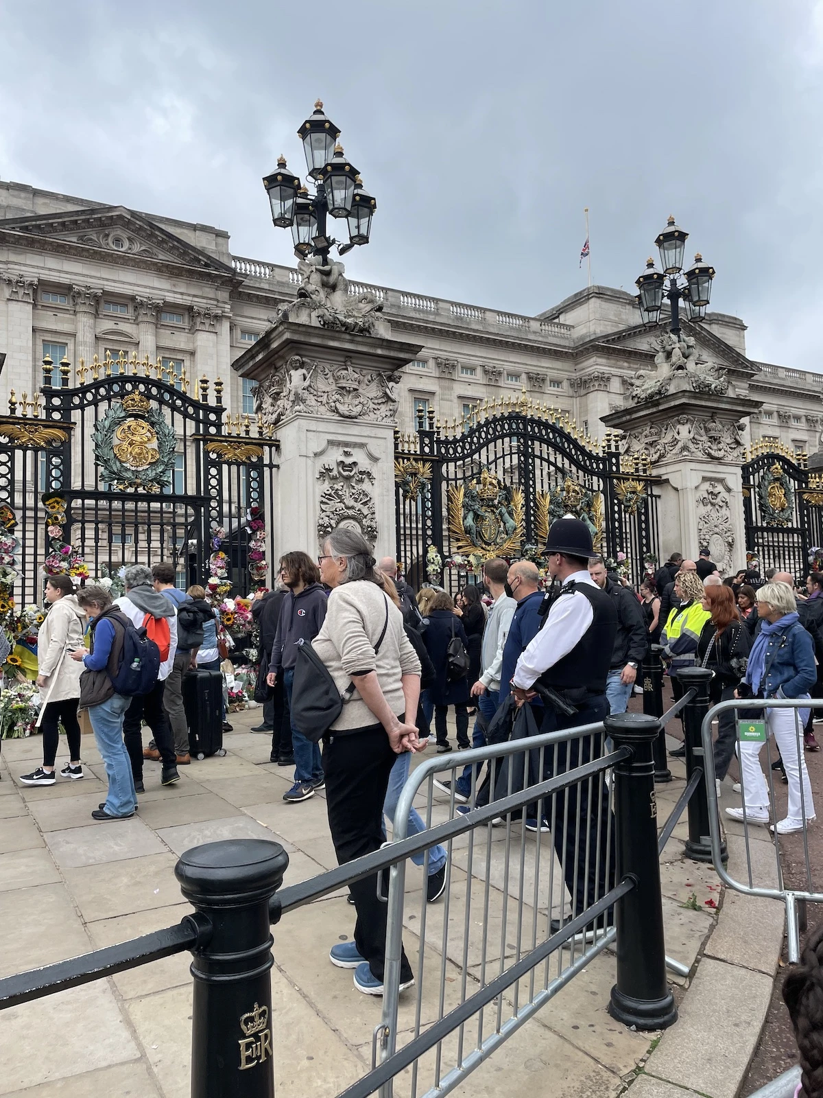 Comme si la météo avait elle aussi décidé que la sobriété était de mise aujourd’hui, les passant.e.s défilent sous un ciel gris et triste, que quelques gouttes de pluie viennent perturber de temps à autre. Certain.e.s portent un bouquet de fleurs, ou une pancarte faite à la main sur laquelle on peut lire « We will miss you » (« Vous allez nous manquer »). Des touristes se prennent en photos, tout sourire et selfie stick à la main. Ça clash un peu avec le reste du portrait.