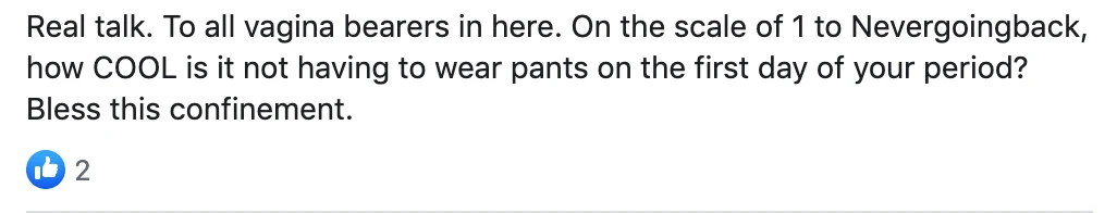 Ce statut partagé par une amie sur Facebook résume à lui-seul, le petit pouvoir libérateur que le confinement a pu avoir sur certains aspects du quotidien: