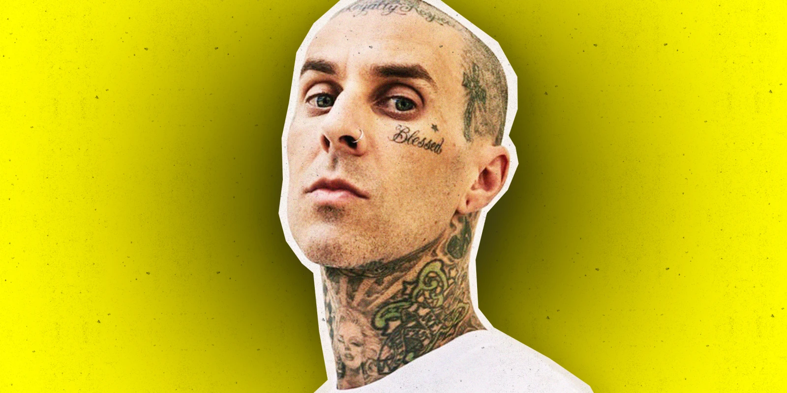 Pour les non-initié.e.s (ou peut-être juste les gens nés après 1996), Travis Barker est le batteur du groupe pop punk Blink-182. Le trio californien a popularisé et surtout démocratisé le mouvement punk auprès des ados banlieusard.e.s au tournant du millénaire. Leur philosophie, c’était qu’on n’avait pas besoin d’haïr la société pour faire de la musique punk. Il fallait juste être légèrement insatisfait de sa vie et arrêter de la prendre au sérieux.