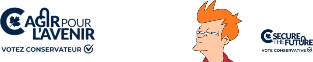 Vedette involontaire d’une campagne fédérale vite oubliée, ce sous-logo du Parti conservateur du Canada essaie de dire « Agir pour l’avenir », mais s’emmêle dans des traits maladroitement agencés. Pour comprendre d’où vient ce naufrage, il faut se reporter au vrai logo, celui qui a été pensé in English. On y comprend mieux le principe du cadenas entre le U et le R. L’adaptation bâclée en français, conjuguée à la proximité du C unifolié, explique-t-elle la défaite des conservateurs ?