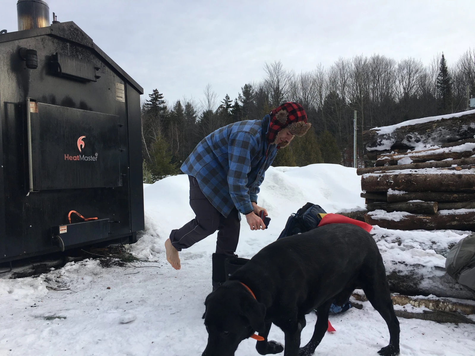 À ma grande surprise, je réussis à dormir 4-5 heures, ce qui est vraiment bon pour une première nuit hivernale, me dit-on. J’étais pas trop mal, étendu sur mes billots et réchauffé par une couverture en laine que m’a gentiment prêtée Morrigane, la fille de Mathieu. (Le culte de la laine est très fort, dans le milieu de la survie, où on préfère les fibres naturelles aux « manteaux en plastique ».)