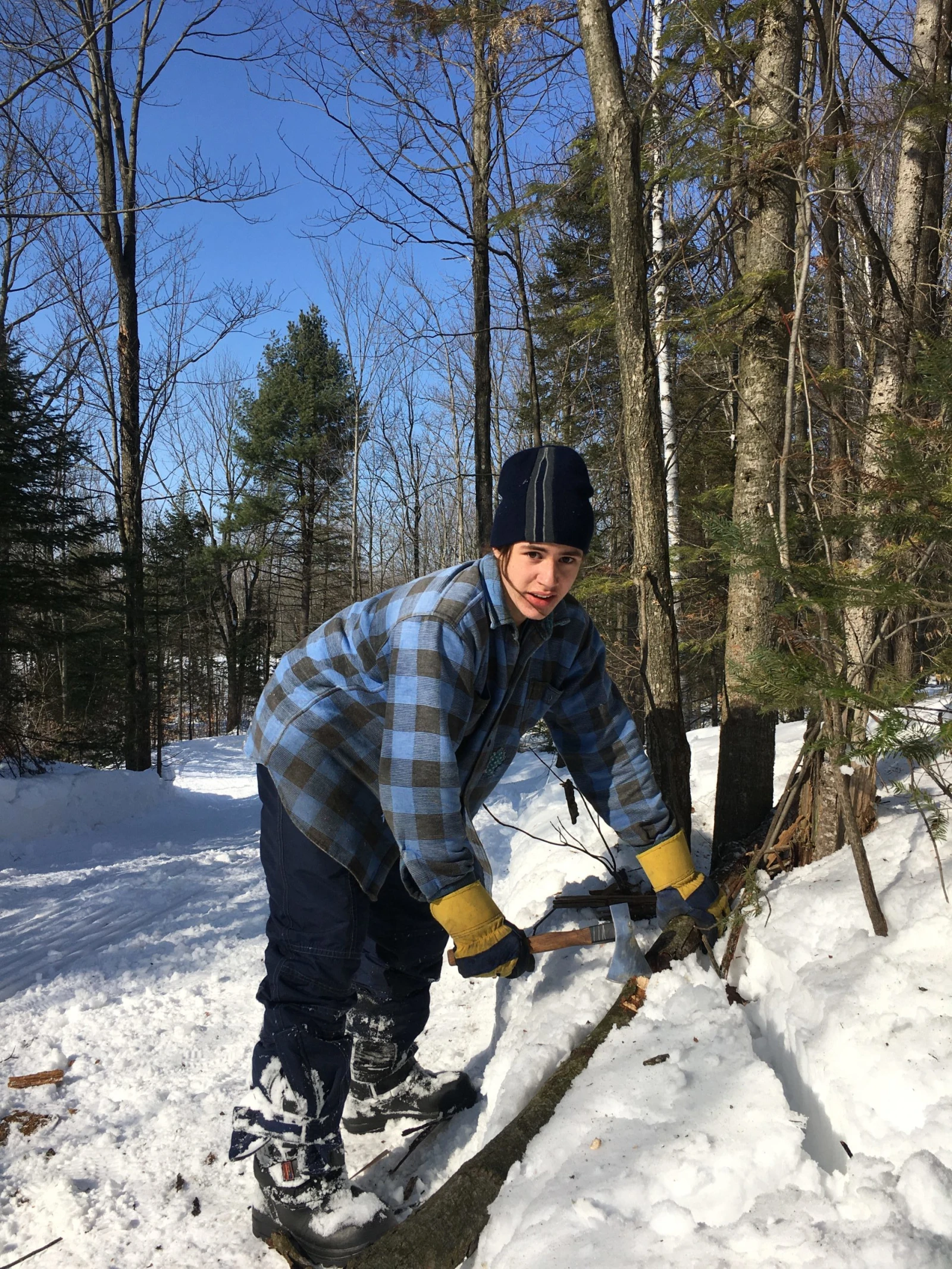 Gaël me prête sa hache pour couper des billots pour solidifier le tour de notre tombeau. Je ne me suis pas senti aussi viril depuis mes cours de chasse au dindon sauvage, il y a quelques années (oui, j’ai vraiment fait ça).
