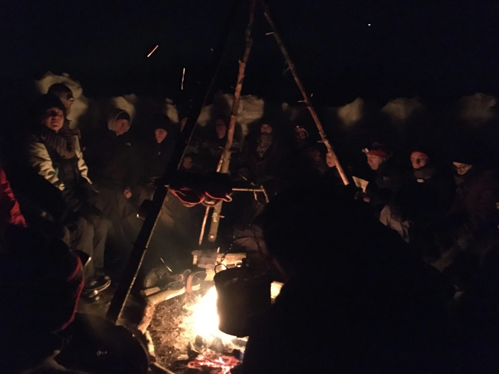 C’est l’heure du cours Hypothermie 101. Ça tombe bien, mes pieds recommencent à geler dès que j’arrête de bouger. Mathieu propose plusieurs trucs franchement intéressants (et rustiques), de catégorie « fais chauffer ta gourde d’eau et colle-la sur ton chest pour te réchauffer ».