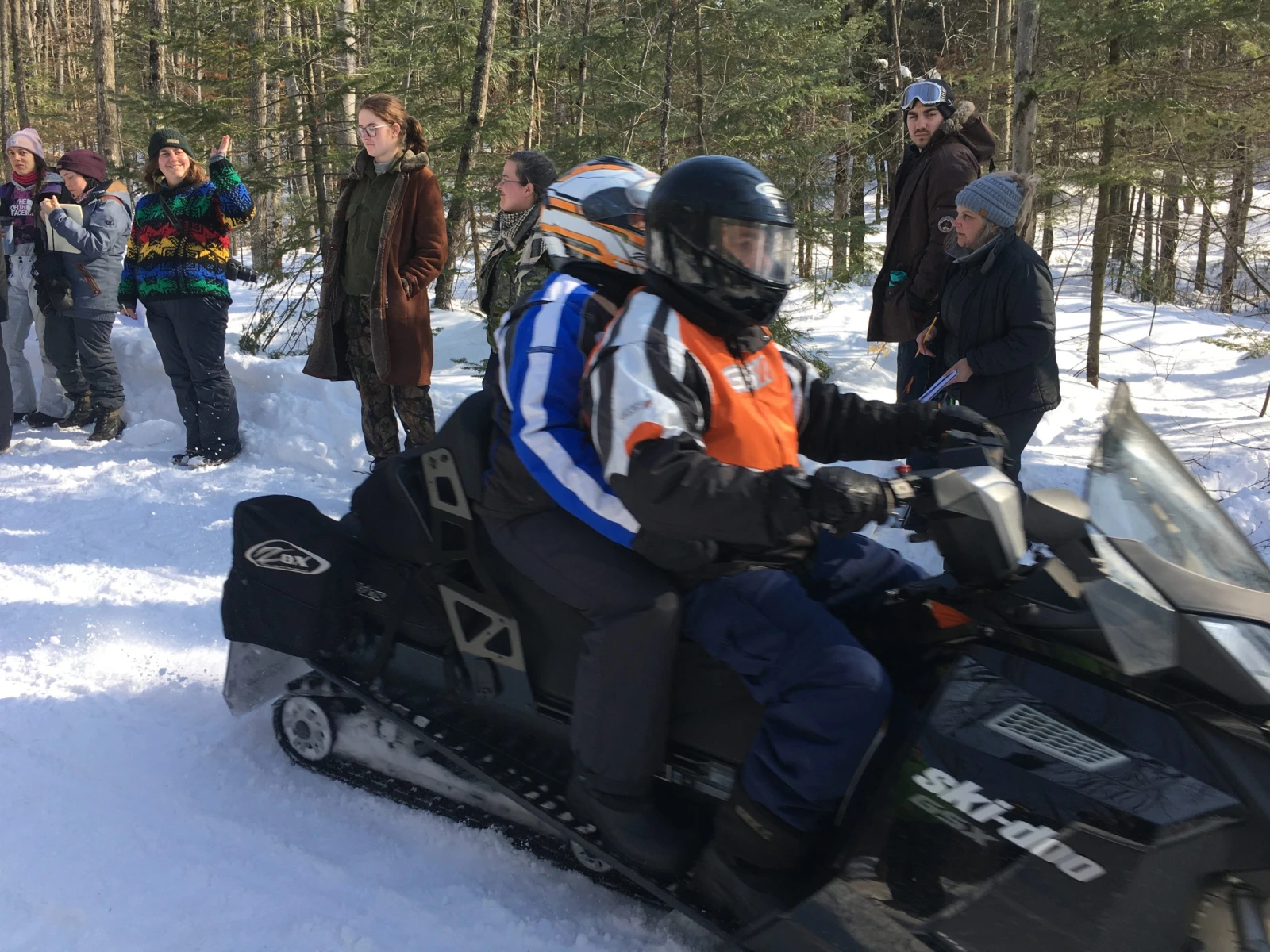 Les instructions de Geneviève sont partiellement étouffées par le vrombissement incessant des motoneiges dans les nombreux sentiers autour, nous rappelant qu’on n’est pas réellement en Nouvelle-France au début du 17e siècle.