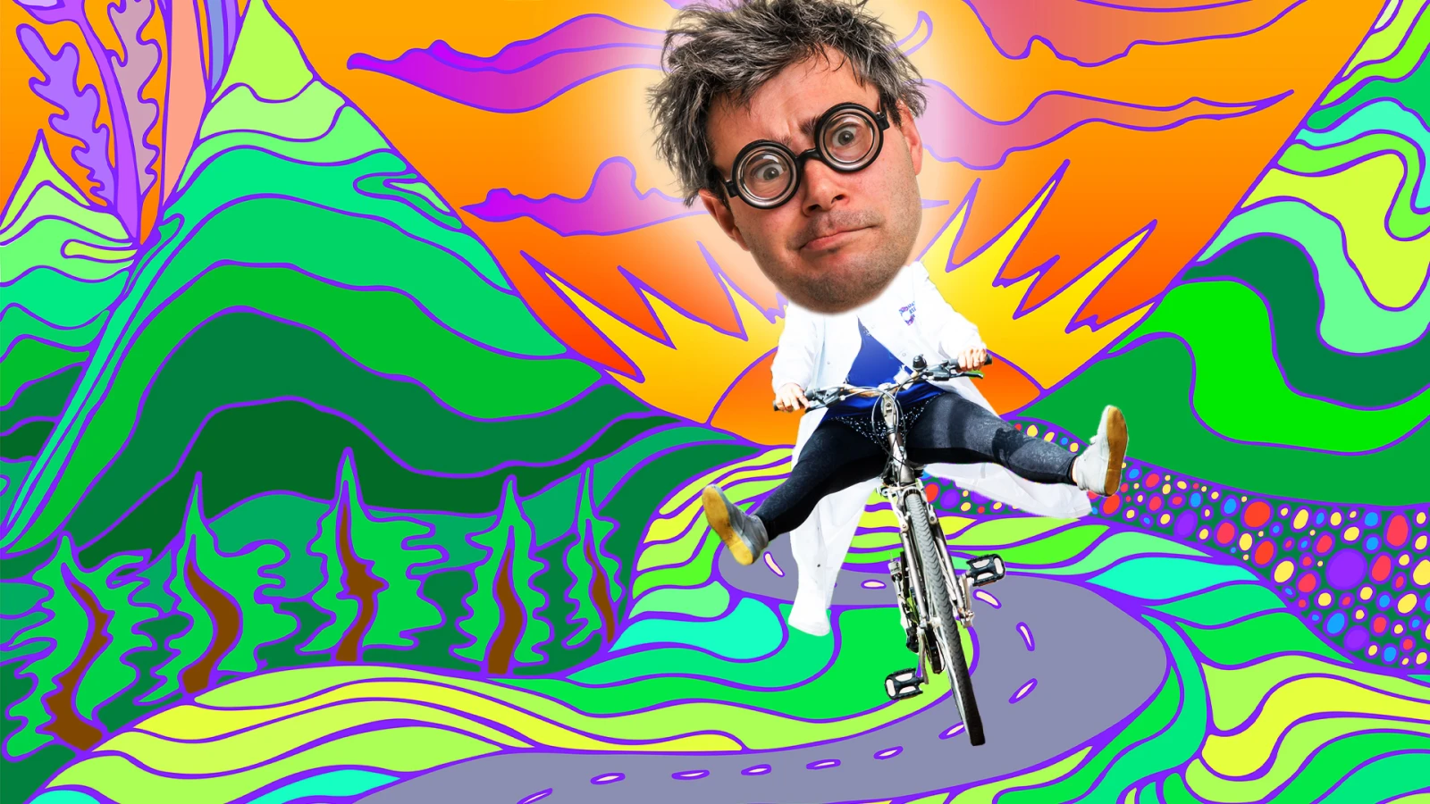 C’est là qu’il s’est mis à badtripper. Pendant le trajet à vélo, il commence à ressentir une anxiété grandissante, et son champ de vision devient complètement distordu. Il a l’impression d’être figé dans le temps et l’espace, convaincu qu’il n’avance pas d’un poil. Parler à son assistante lui demande un effort surhumain; il est incapable de former des phrases complètes et cohérentes. C’est en référence à cette balade inhabituelle que le 19 avril est connu sous le nom de Bicycle Day par les amateurs de LSD partout dans le monde.