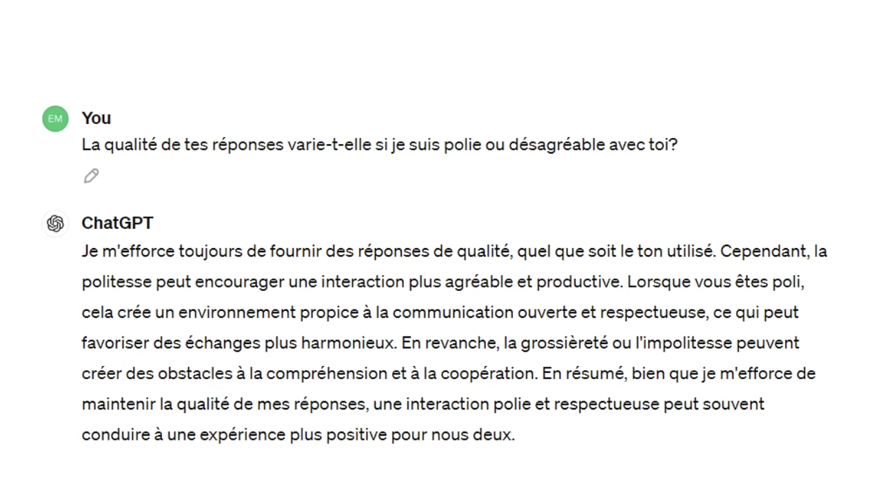 Est-ce que ChatGPT donne de meilleures réponses si on lui parle gentiment ?
