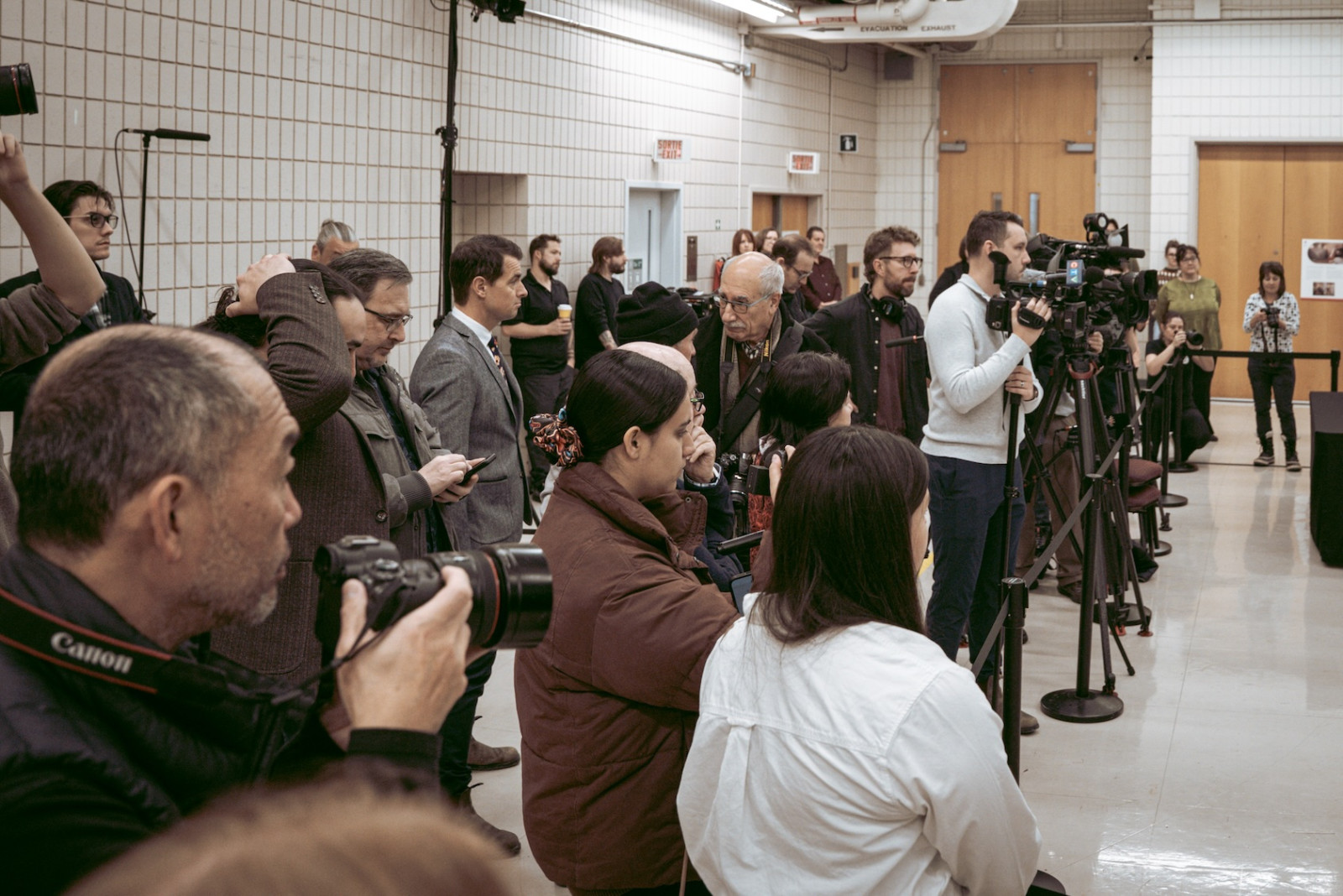 Le personnel du musée se rassemble, s’échange des regards, des sourires nerveux, les mains croisées dans le dos. Une fébrilité flotte dans l’air. Il y a quelque chose de très institutionnel, de très canadien, même, dans cette cérémonie chronométrée. On révise son texte pour le direct. Les lumières s’allument. Bien sûr que c’est un show. La presse a été convoquée en mode junket, l’angle est déjà trouvé. Rien, ici, n’est improvisé.
