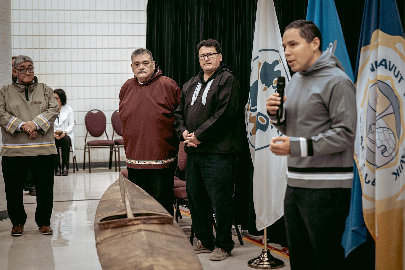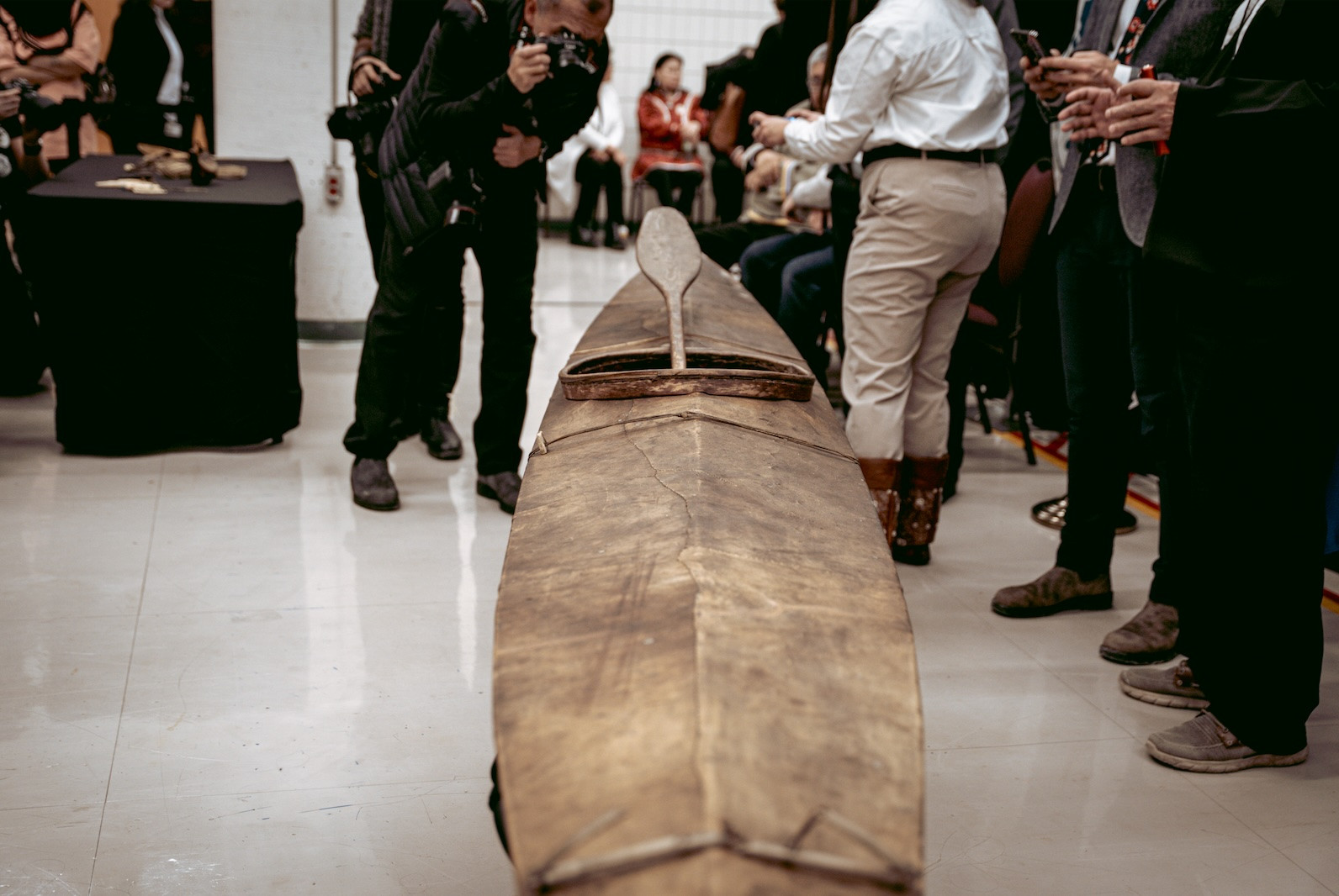 Dans la salle, une militante inuite prend la parole, d’abord en inuktitut, puis en anglais. Elle demande si ce type de rapatriement ne pourrait pas accélérer la création d’un véritable musée inuit, plus vaste que le tout petit espace actuel à Iqaluit. On lui répond qu’un projet d’envergure est bien dans l’air, mais qu’il n’en est encore qu’à ses balbutiements. Pour l’instant, la majorité des artefacts historiques sont exposés à Yellowknife, Winnipeg et Ottawa. Quant à ce kayak, si l’on souhaite un jour le voir dans le Nord, encore faudra-t-il qu’il existe un lieu pour l’accueillir.