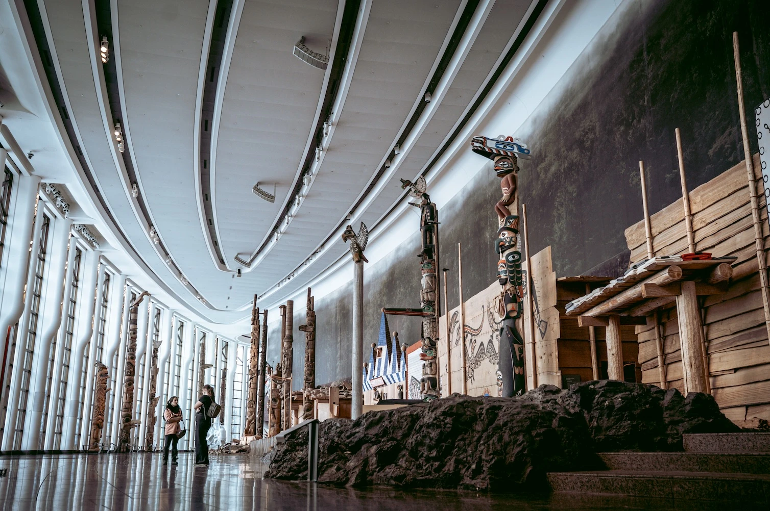 On avance en petit peloton de journalistes, encadrés par un responsable qui déverrouille pour nous des portes grillagées. On descend dans les entrailles du Musée canadien de l’histoire, normalement interdites au public, sous l’ombre monumentale des grands totems de l’Ouest.